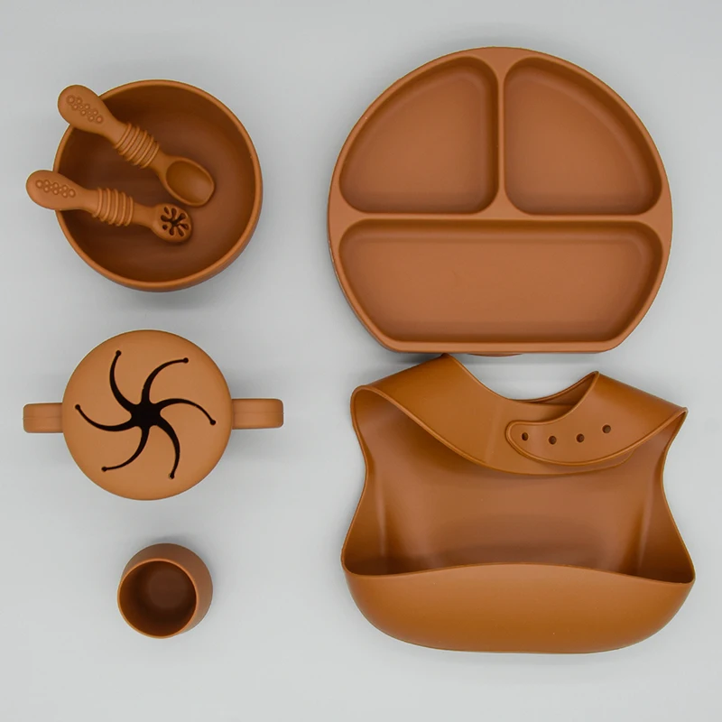 1 Set Silicone Tableware Set Divided Design Plate Silicone Bowl ...