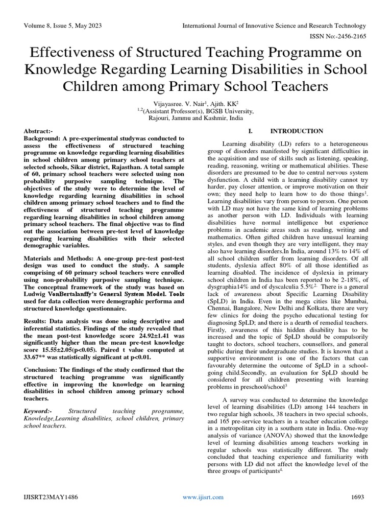 Effectiveness of Structured Teaching Programme On Knowledge Regarding ...