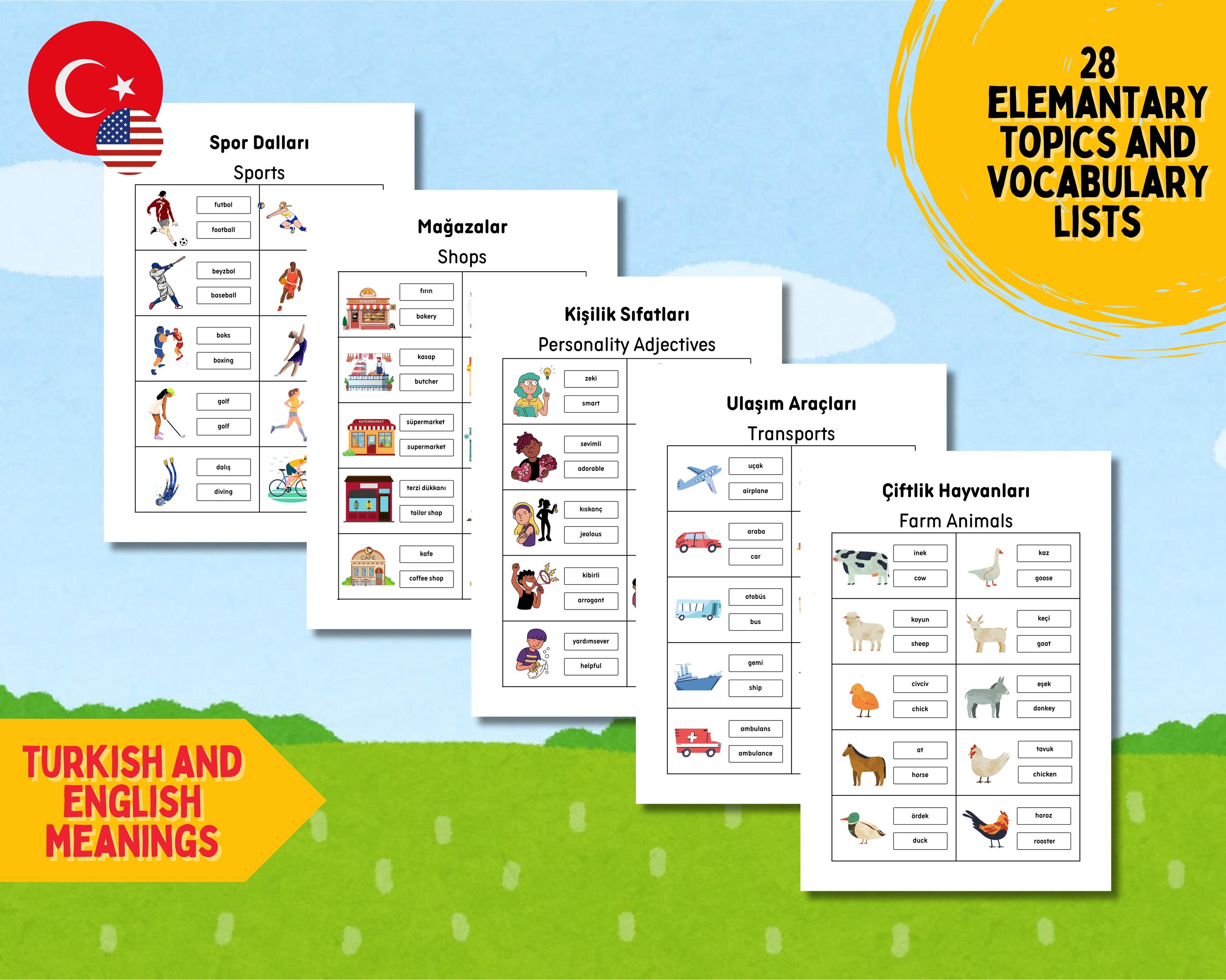 Printable Turkish Vocabulary Lists, Basic Turkish for Beginners, A1 ...