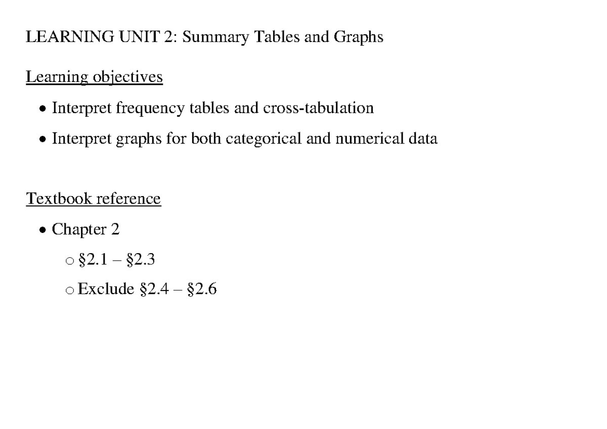 LU2 Lecture Notes - LEARNING UNIT 2: Summary Tables and Graphs Learning ...