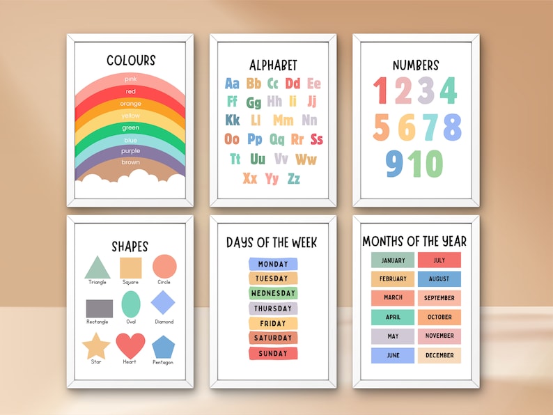 Educational Learning Chart Set 6 for Kids Playroom Homeschool Pre ...