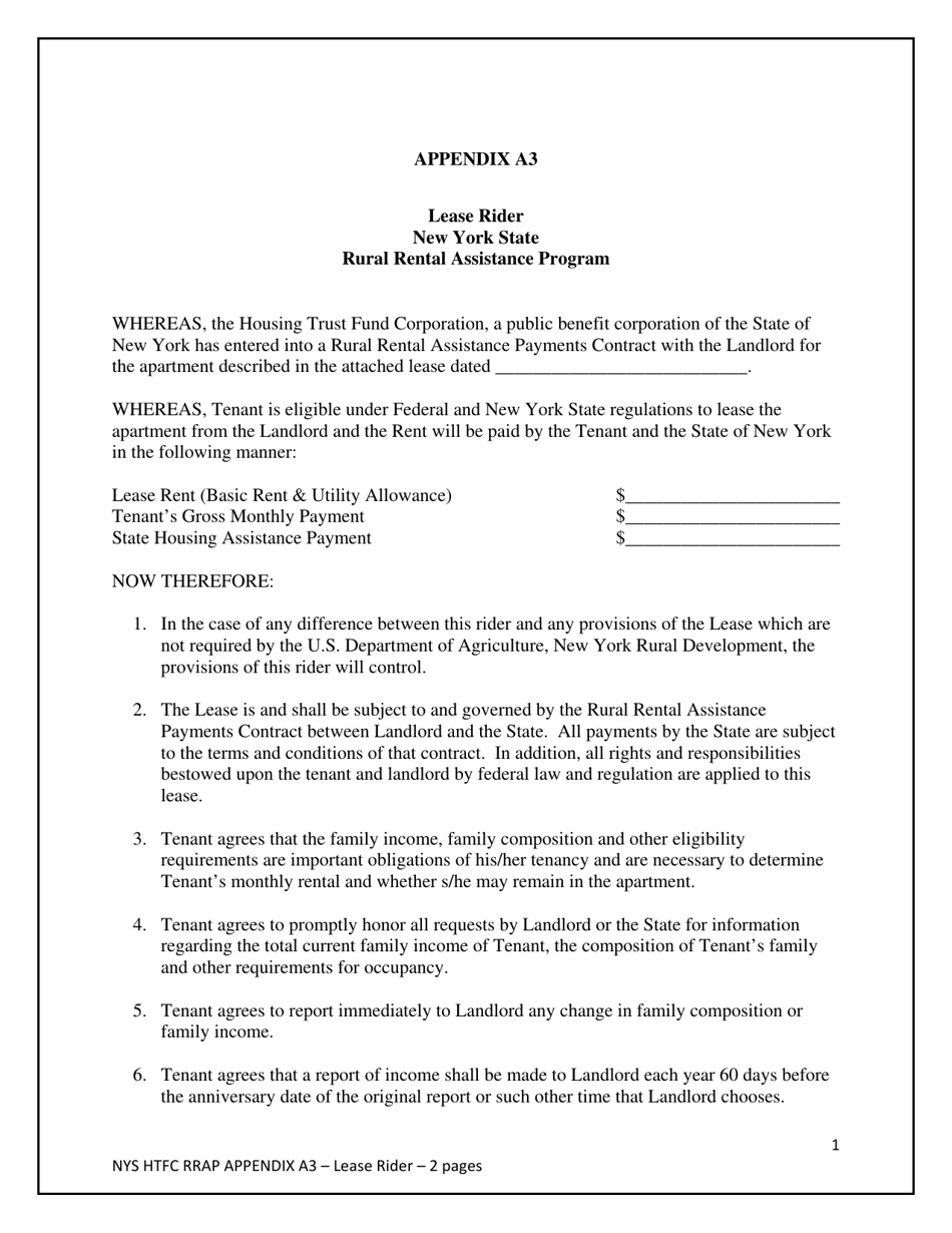 New York Lease Rider - Fill Out, Sign Online and Download PDF ...