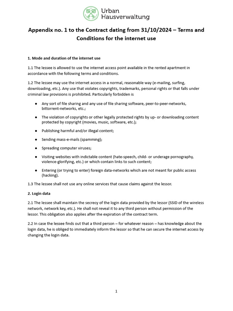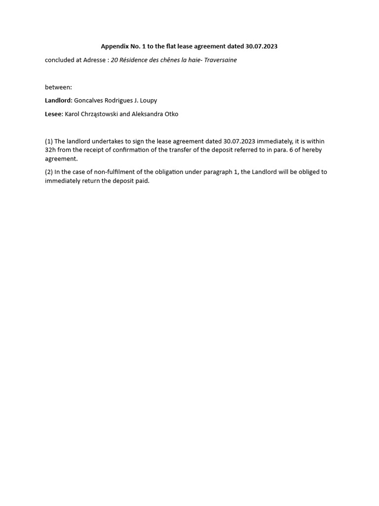 Appendix No. 1 To The Flat Lease Agreement Dated 30.07.2023 | PDF