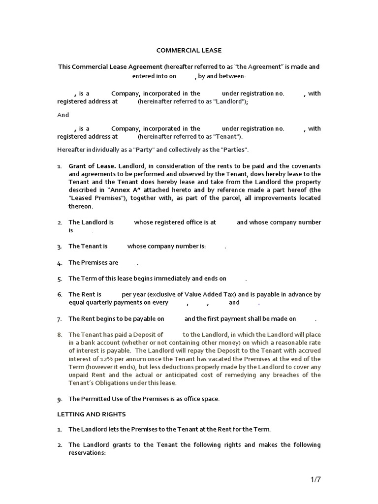 Free Commercial Lease Agreement Template - Word | PDF – eForms