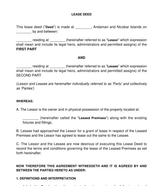 STANDARD FORM COMMERCIAL LEASE in Word and Pdf formats