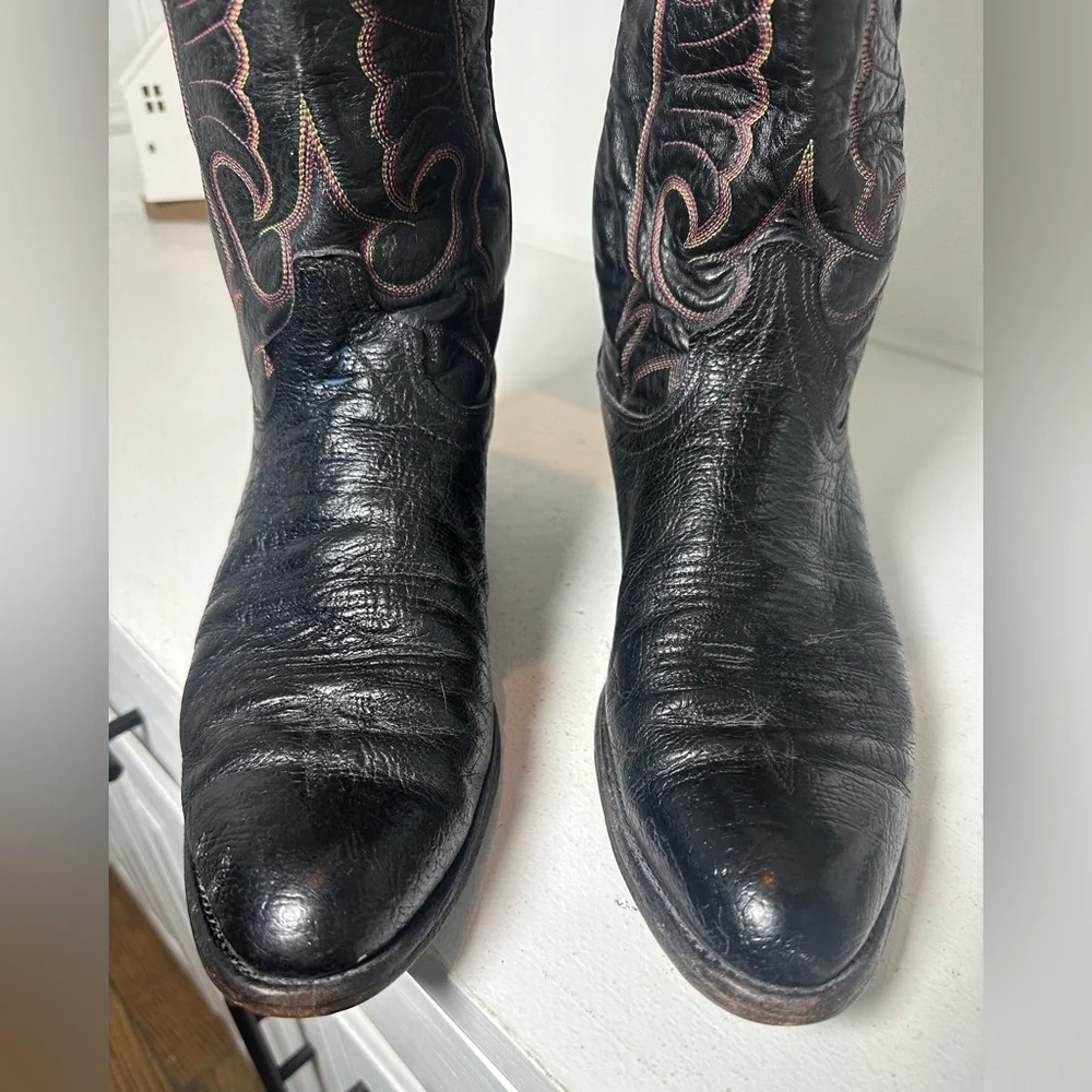Shoes | Vintage Black Western Cowboy Boots Usa Made Size 15d Leather ...