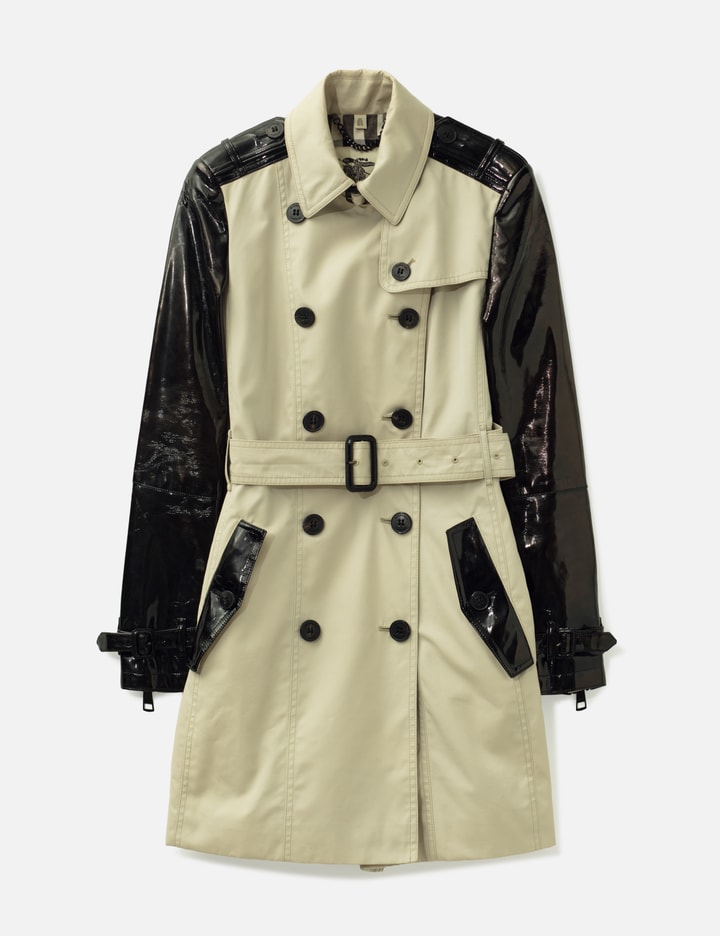 Burberry Patent Leather Sleeve Trench Coat - Iconic beige coat with ...
