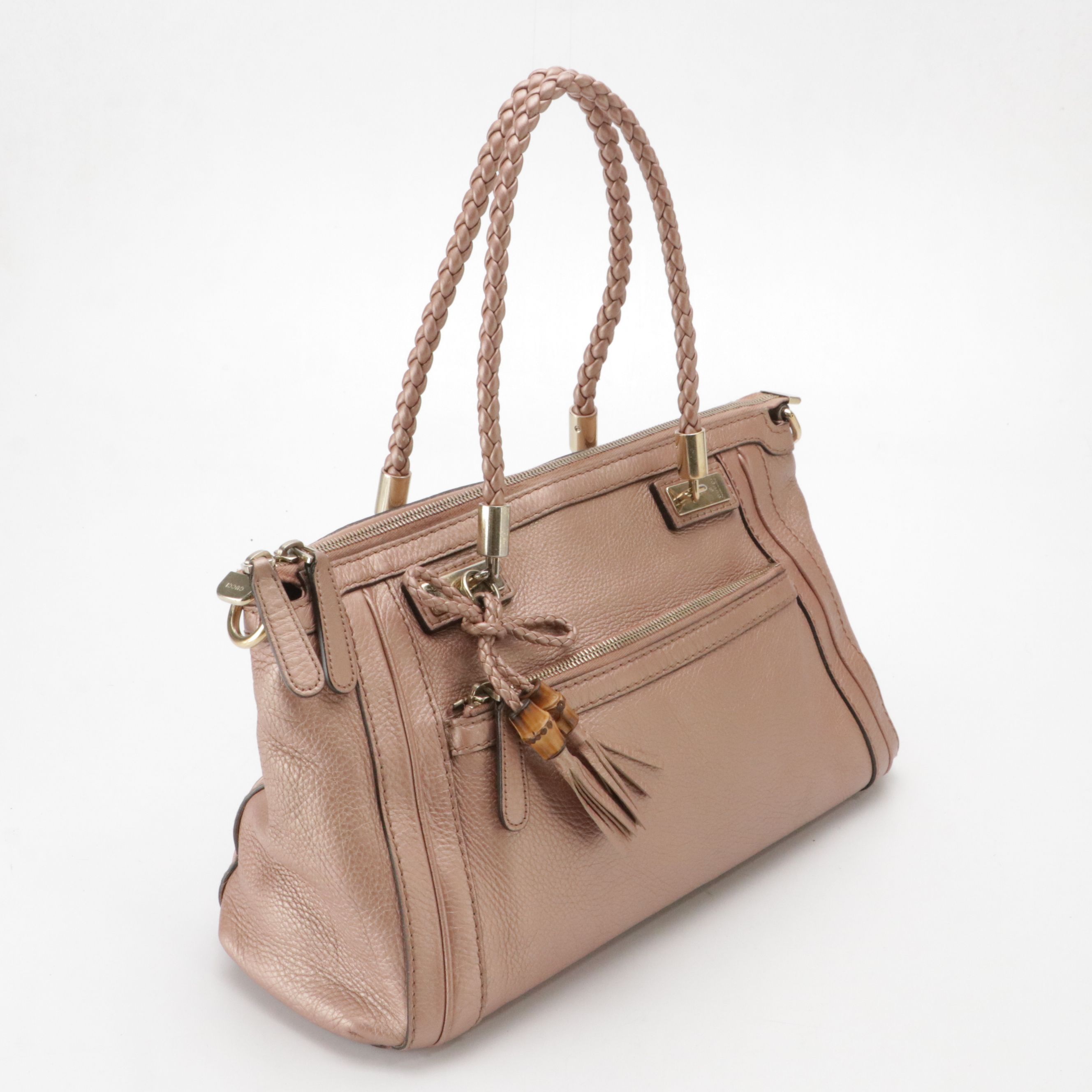 Gucci Bella Braided Strap Zip Tote Bag in Pink Metallic Calfskin ...