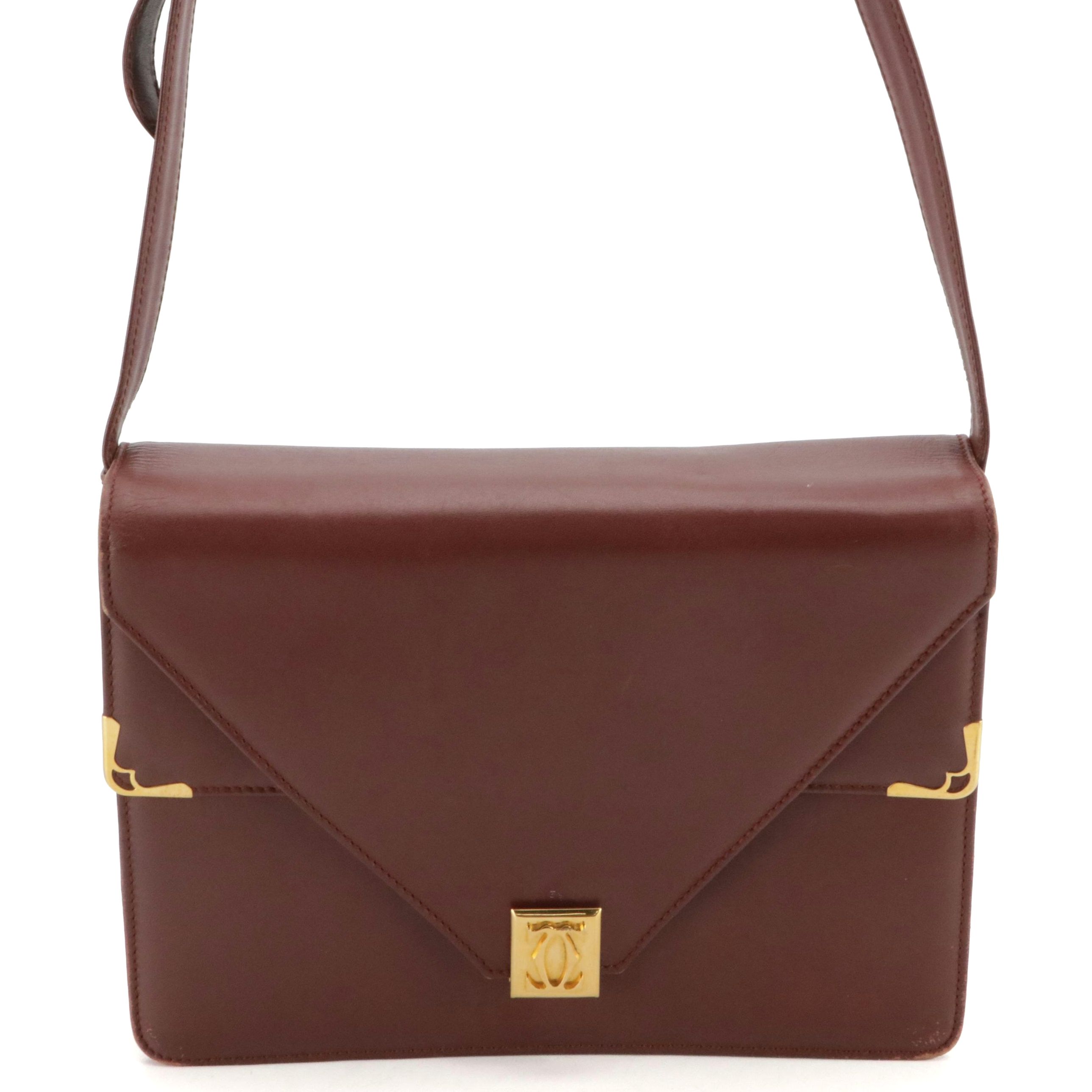 Cartier Must de Cartier Double Flap Satchel in Burgundy Calfskin ...