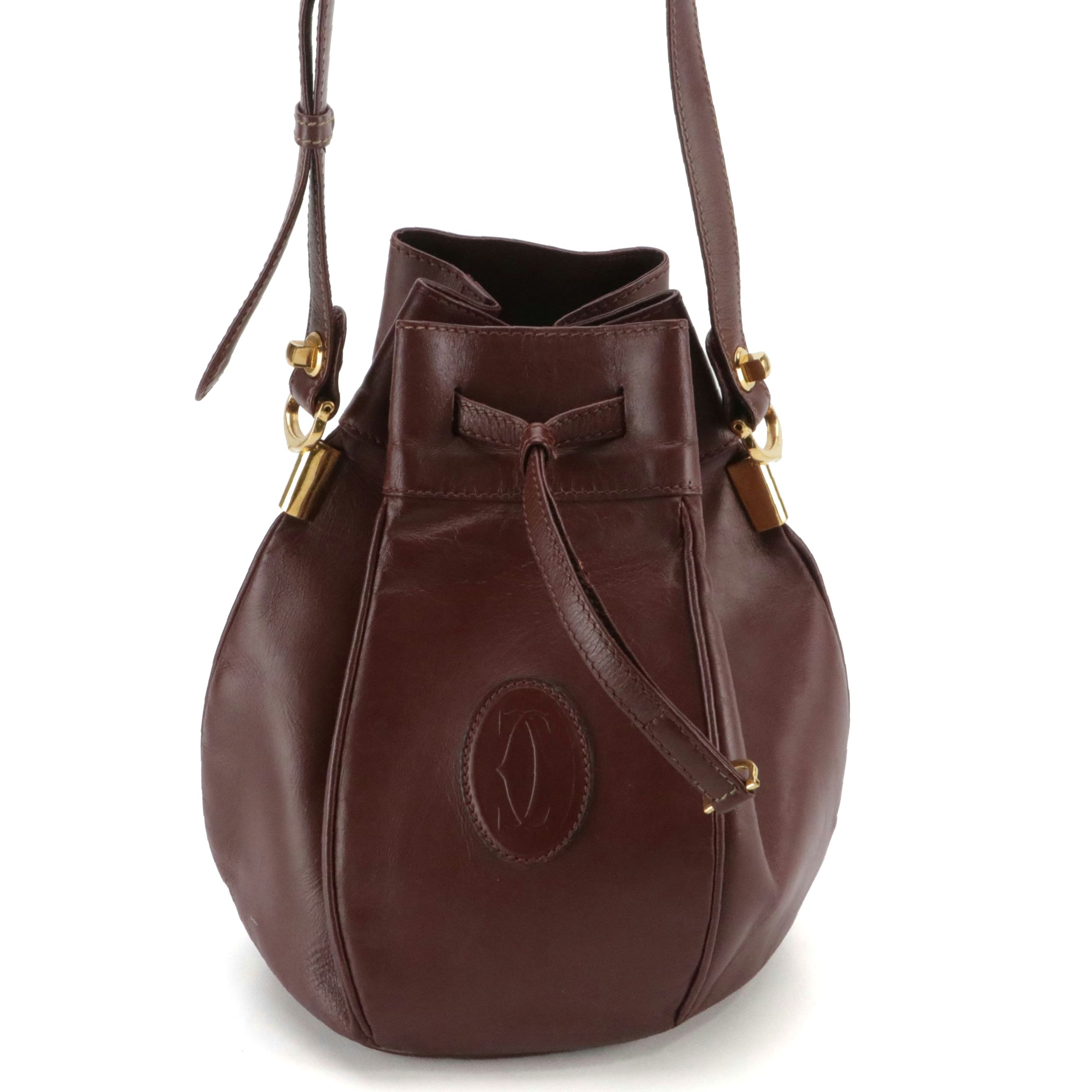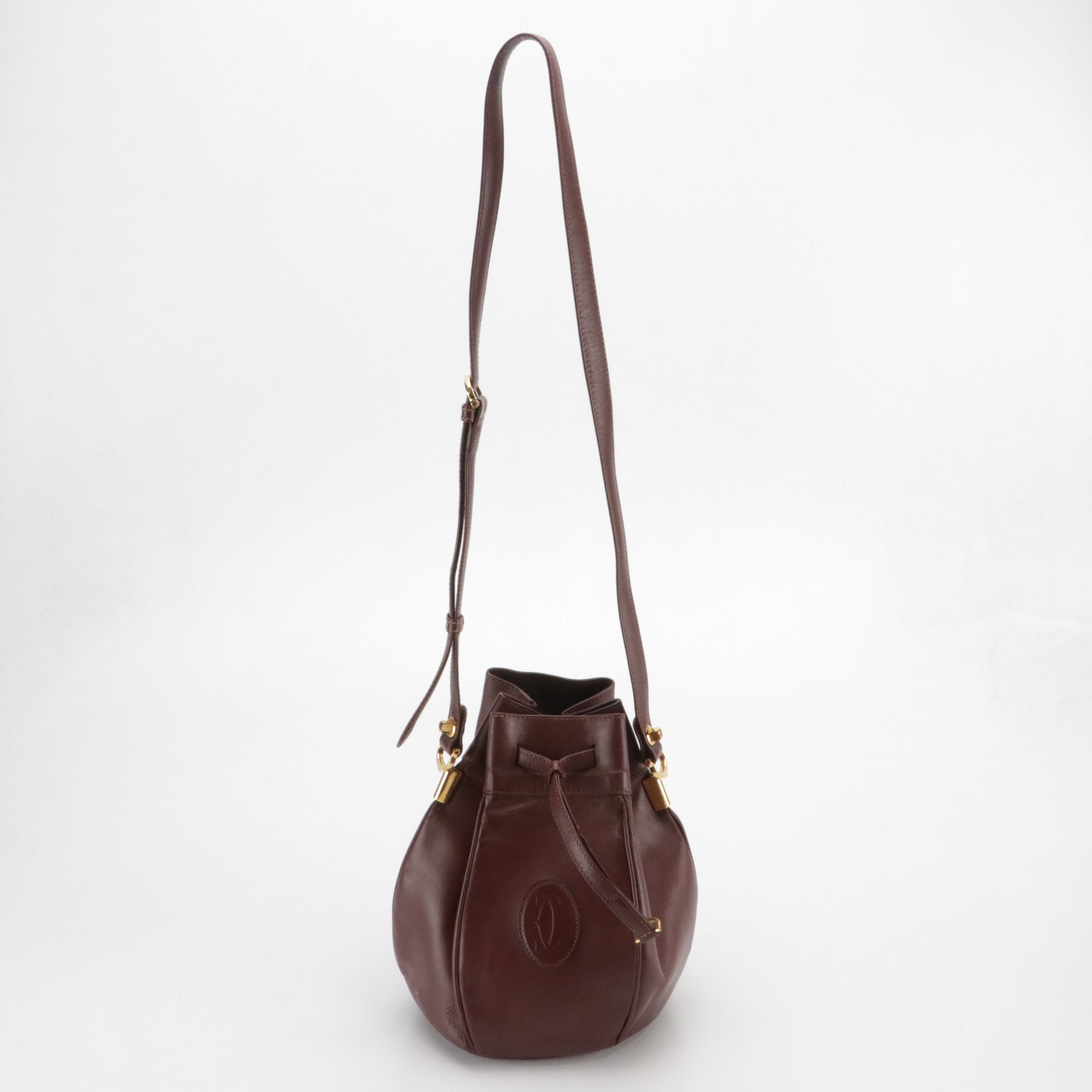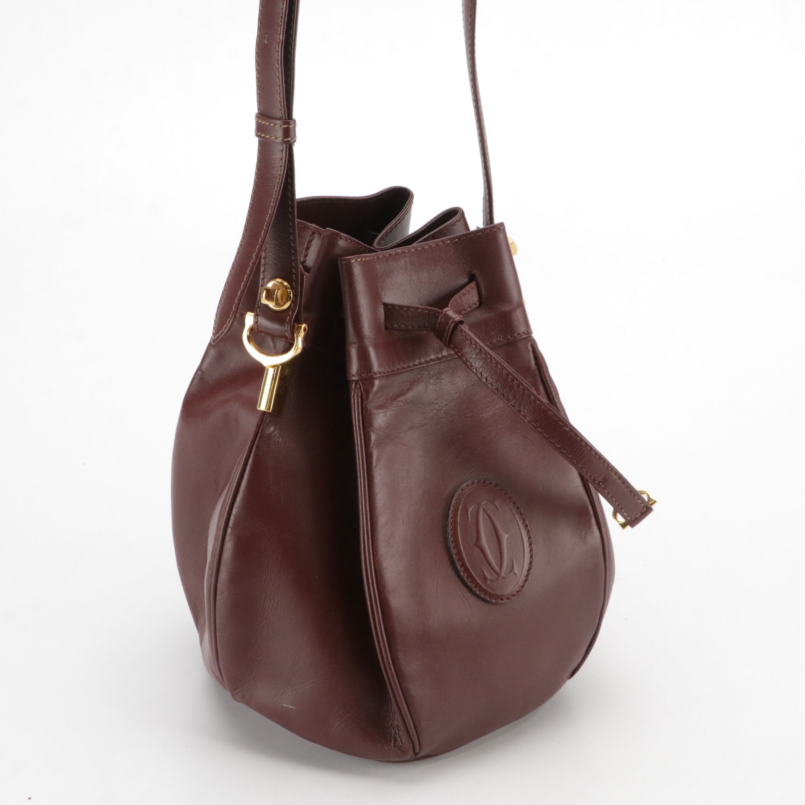 Cartier Must de Cartier Small Drawstring Bucket Bag in Burgundy Leather ...