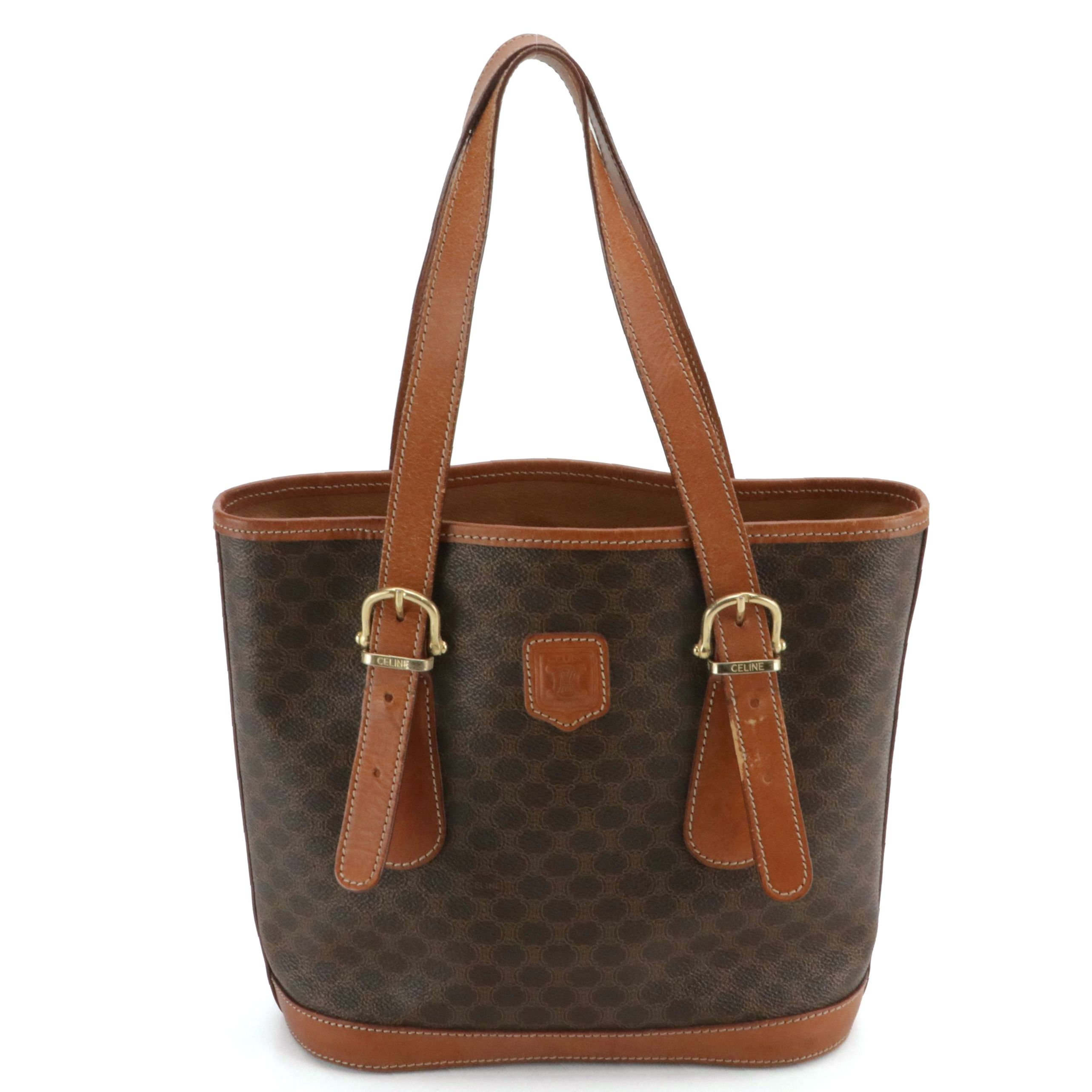 Celine Bucket Tote Bag in Dark Brown Macadam Canvas and Leather | EBTH