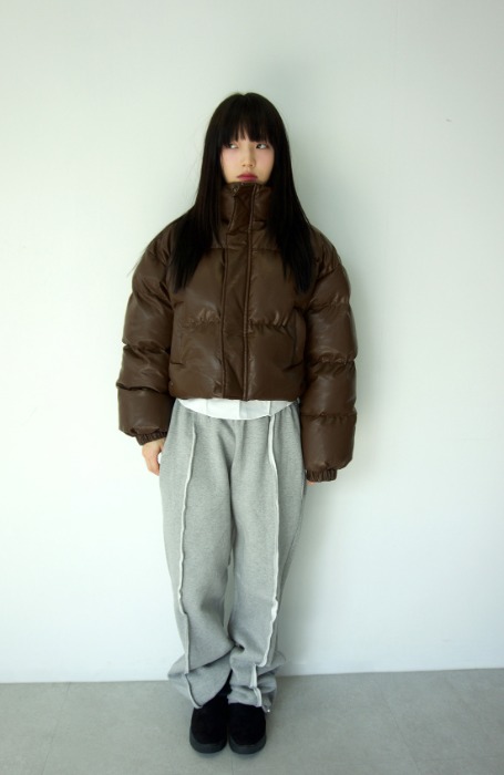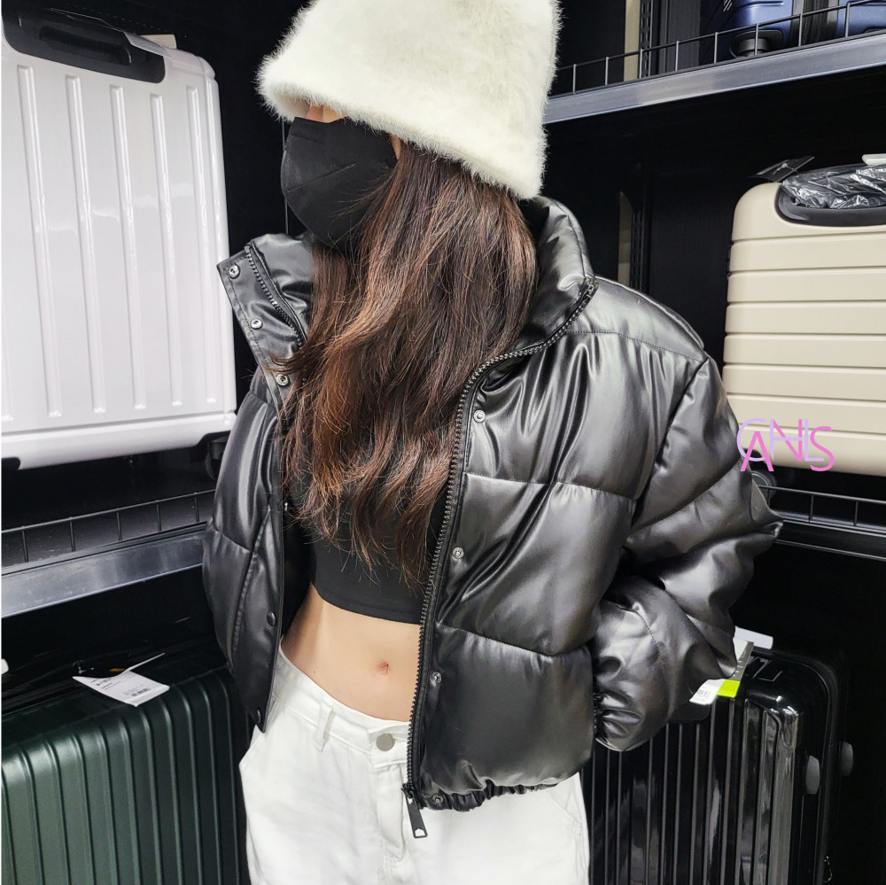 끌랑스 (당일출고) Urban Leather Padding 하이넥 가죽 숏패딩 크롭 패딩 점퍼 - 위시버킷