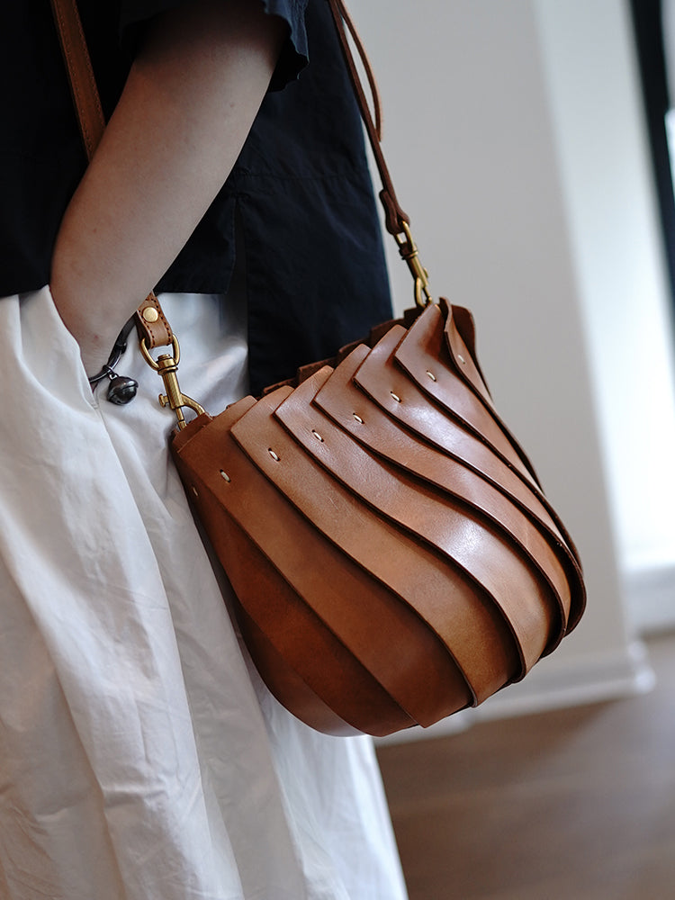 Genuine Leather Shell Style Bucket Bag Purse – iLeatherhandbag
