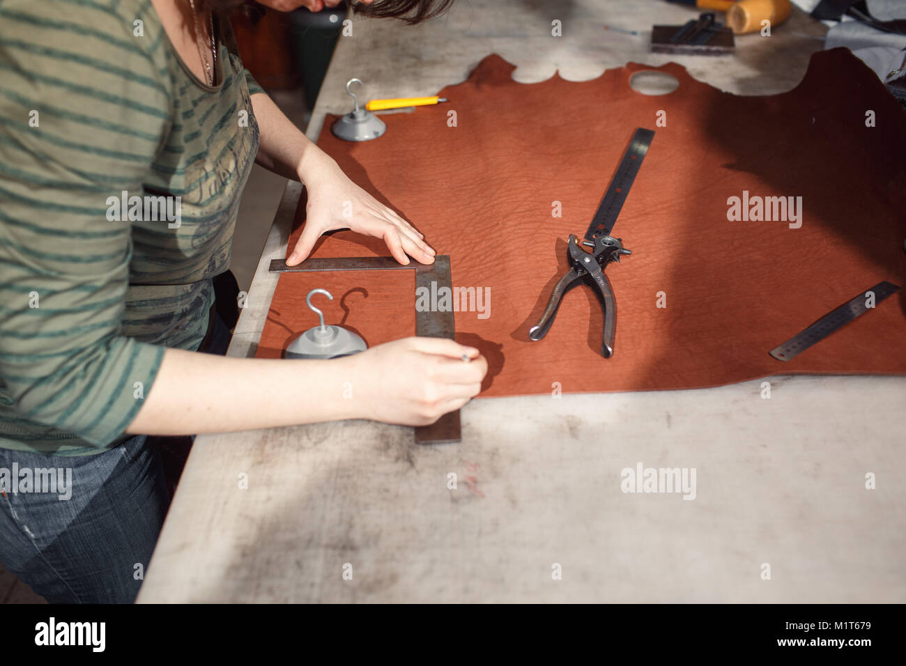 Closeup Images Of A Craftsman Showing The Process Of Recording Leather ...