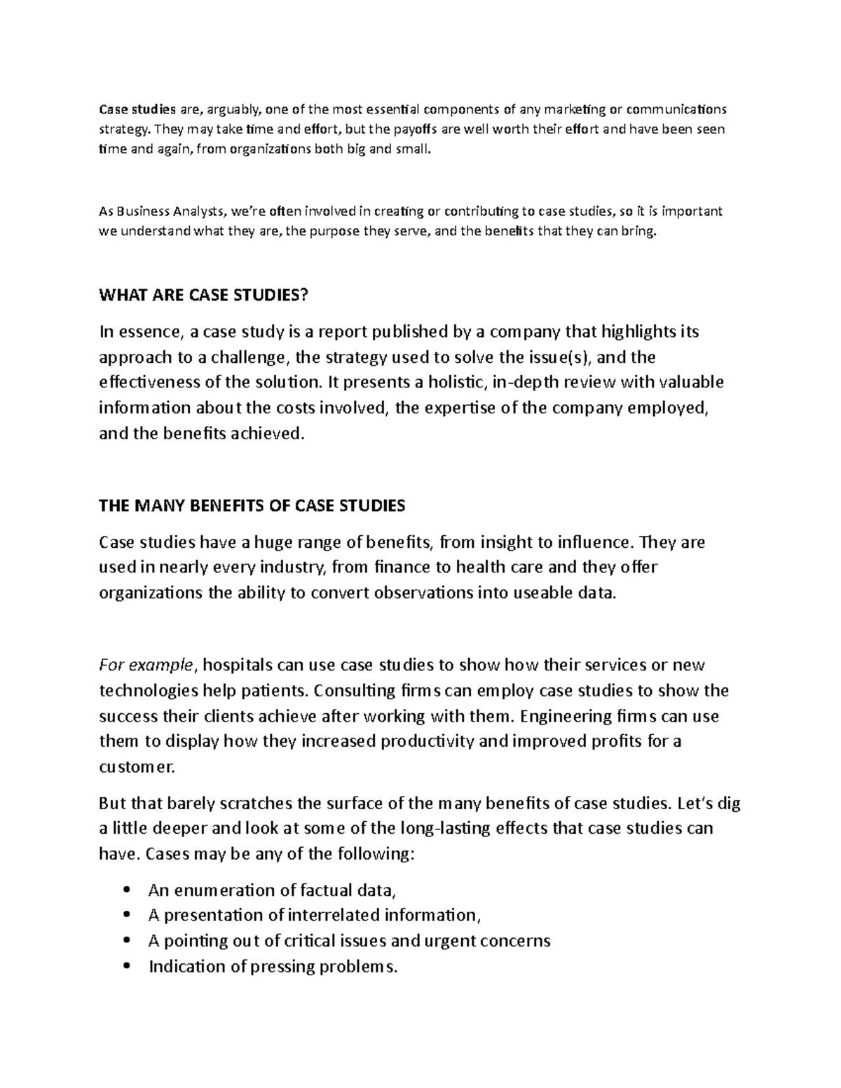 Case-Study-lecture - Case studies are, arguably, one of the most ...