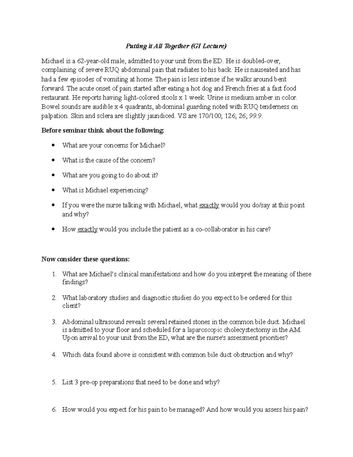 GI Lecture Case Study - PIAT material - Putting it All Together (GI ...