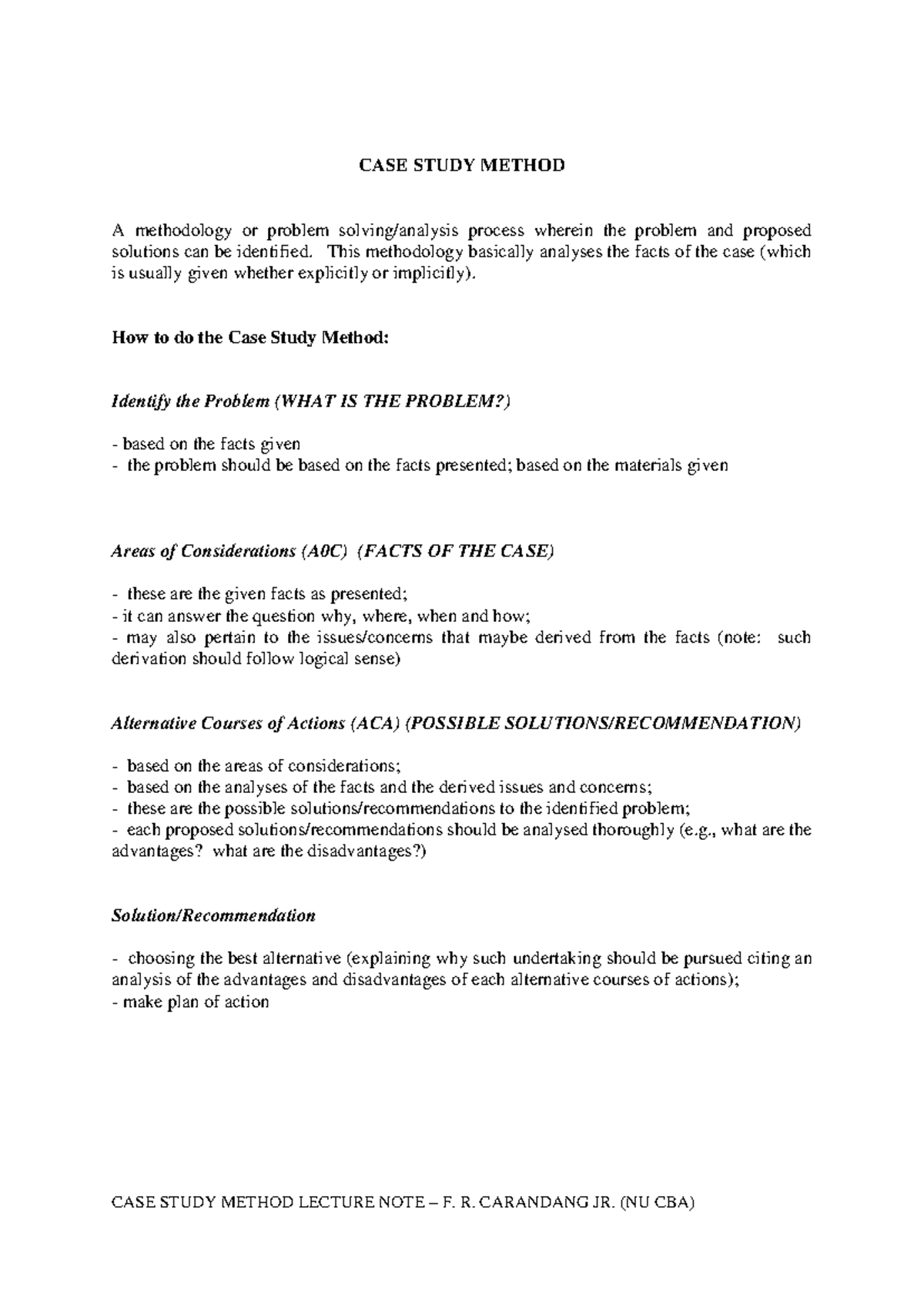 Case study method assignment - CASE STUDY METHOD LECTURE NOTE – F. R ...