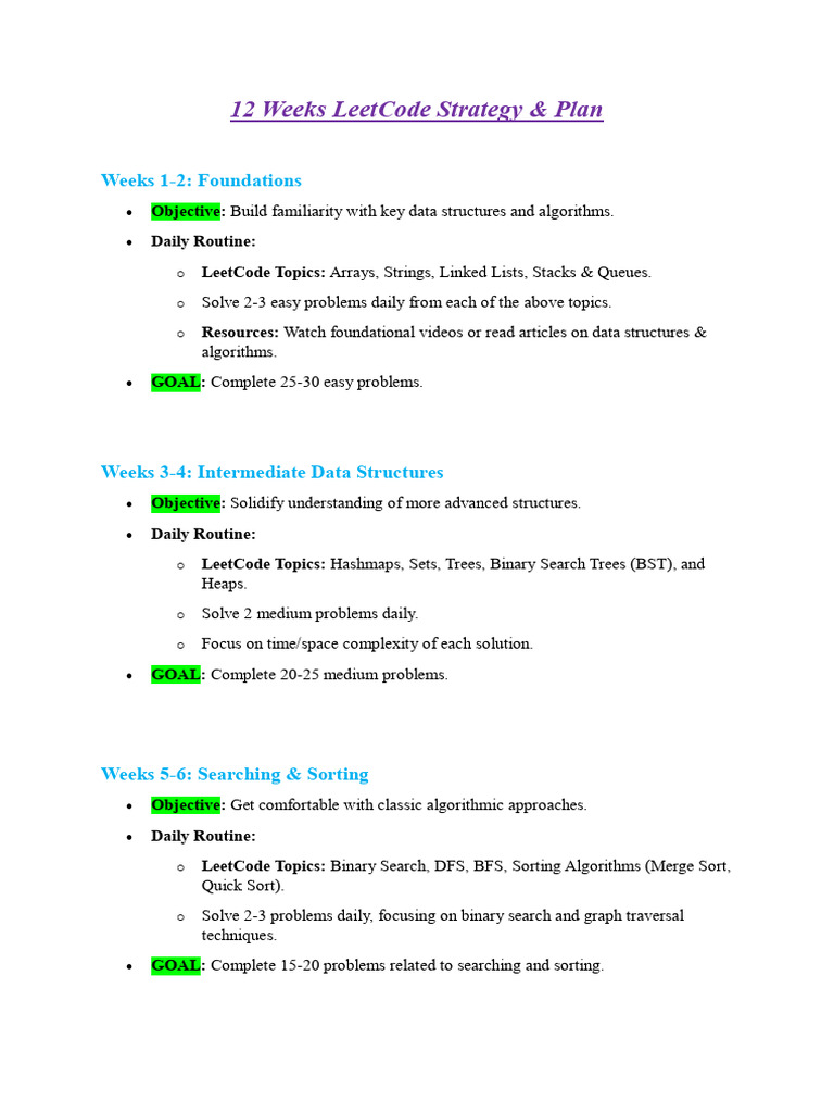 12 Weeks LeetCode Strategy | PDF