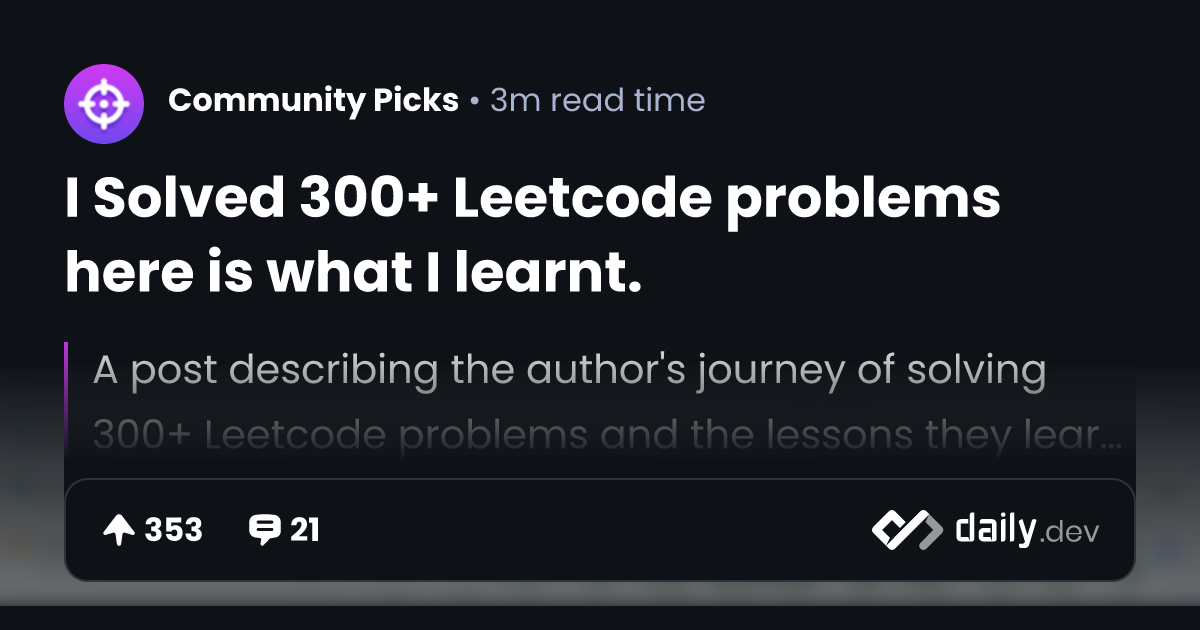 I Solved 300+ Leetcode problems here is what I learnt. | daily.dev