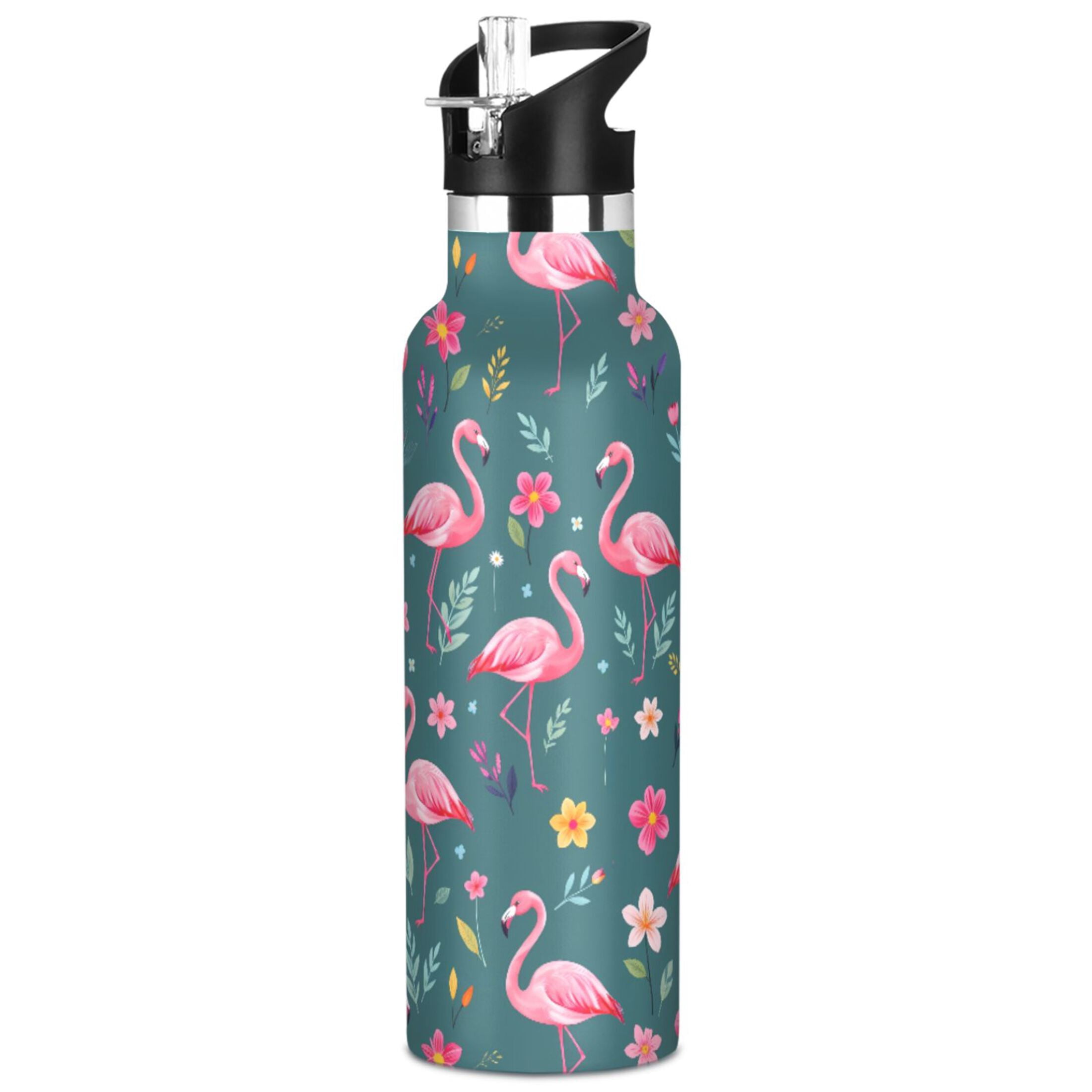 ALAZA Flowers Flamingo Leaves Pattern Stainless Steel Water Bottle ...