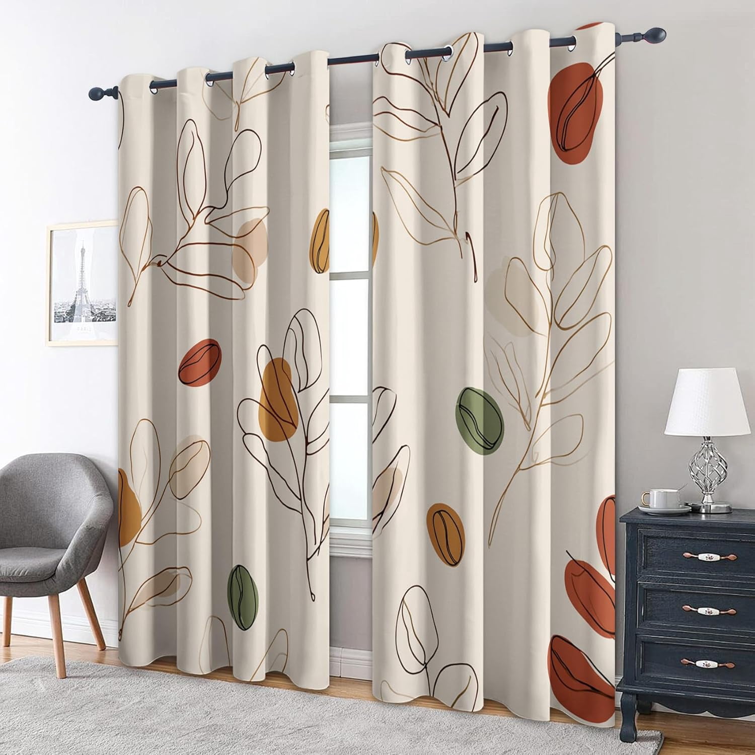 Abstract Boho Leaf Blackout Curtains for Living Room, Bedroom, Mid ...