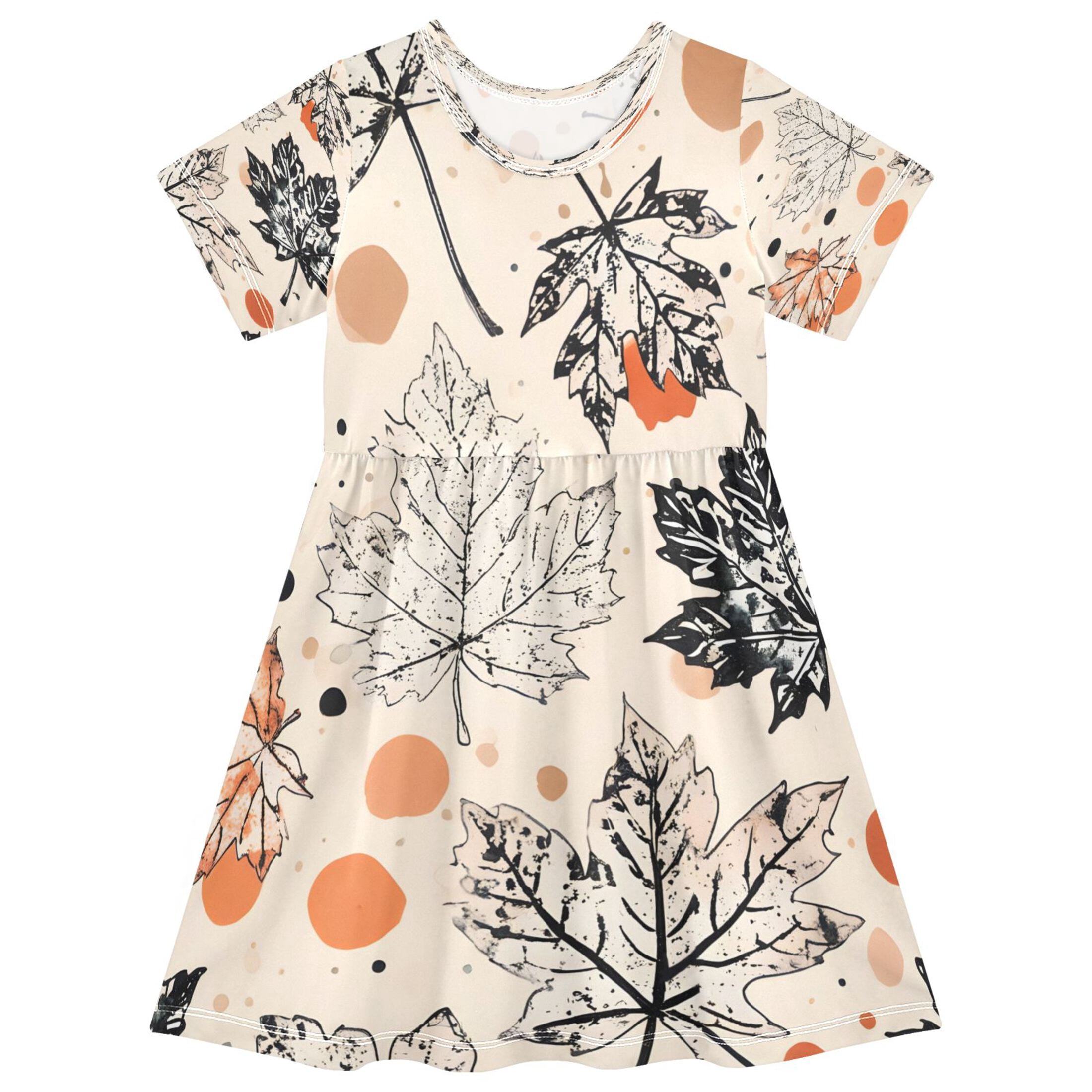 BZSMCE Short Sleeve Dress A-line Silhouette Maple Leaf Lines Pattern Of ...