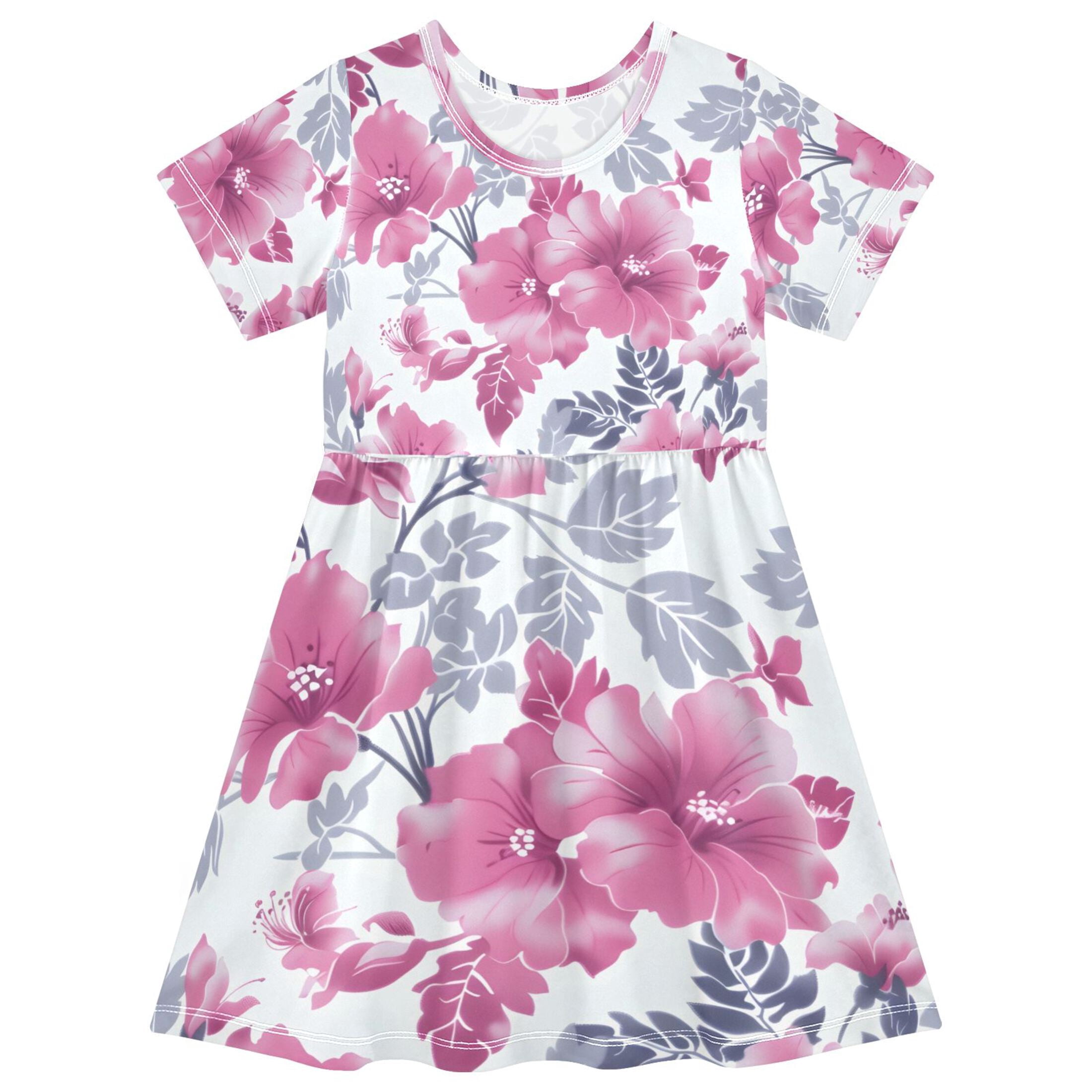 BZSMCE Short Sleeve Dress A-line Silhouette Tile Rose Leaves Red White ...