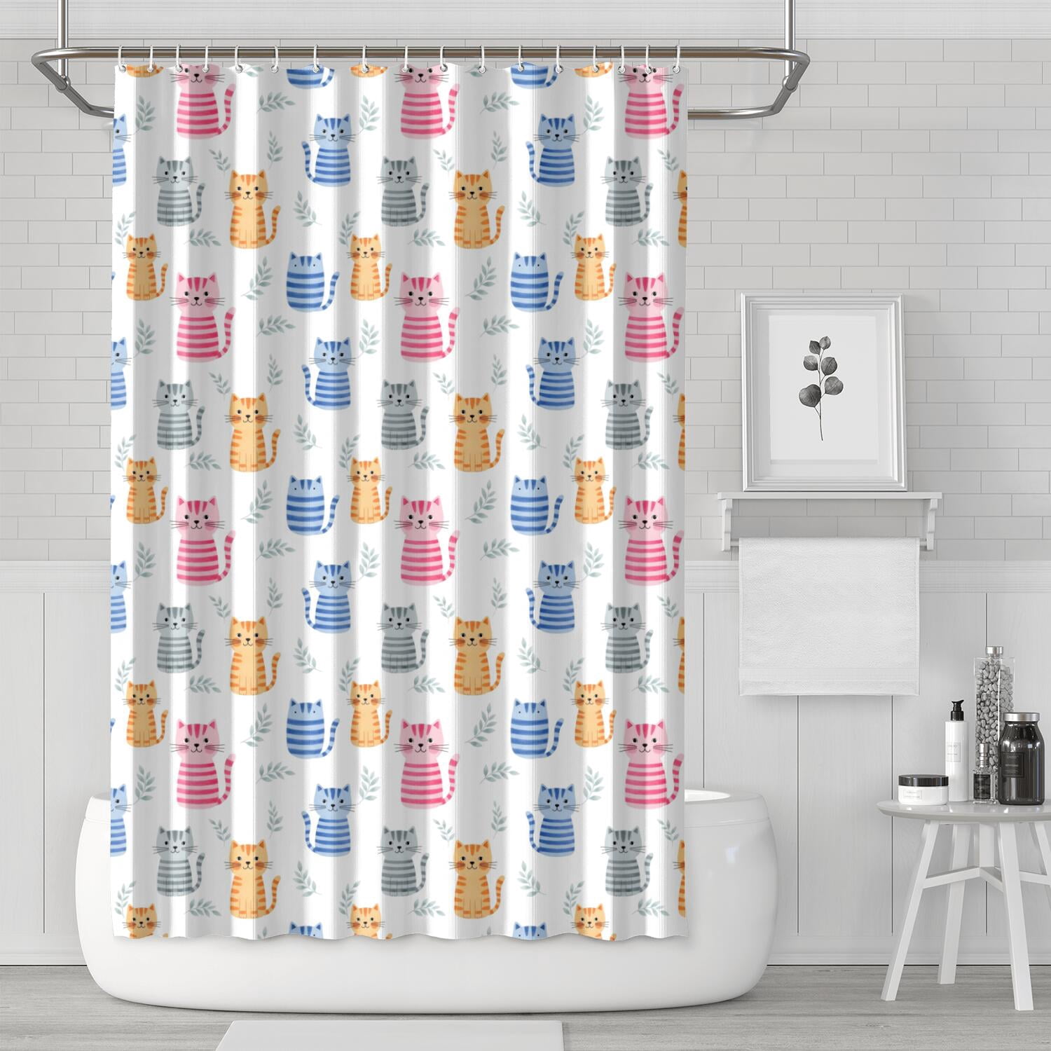 Basics Bathroom Shower Curtain, Water Resistant Fabric with Grommets ...