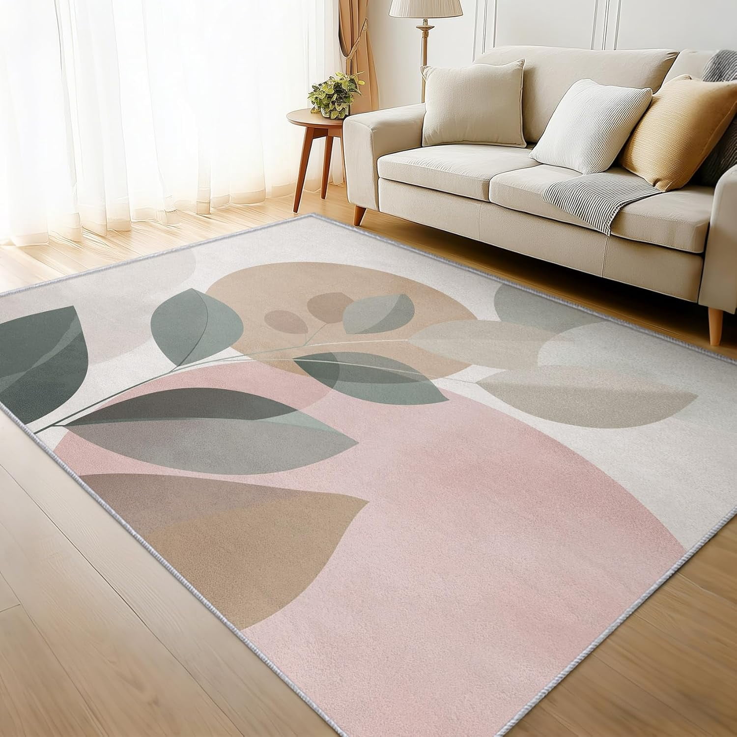 Boho Abstract Leaf Area Rug, Mid Century Botanical Pattern Carpet ...