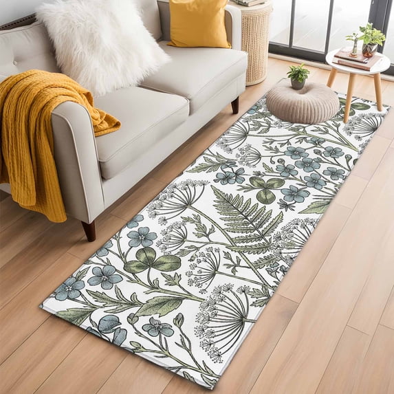 Blue Flower Washable Area Rug 2 x 6 ft Green Leaf Spring Wildflowers ...