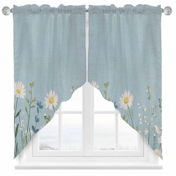 Botanical Blue Green Swag Curtains Spring Pastoral Daisy Leaf on Linen ...