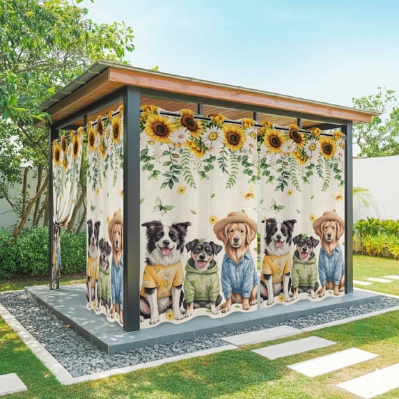 Dogs Outdoor Curtains 1 Panel Watercolor Spring White Yellow Daisy ...