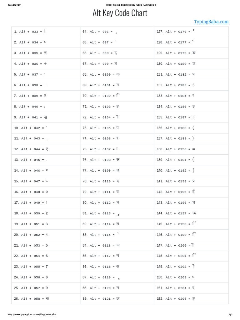 Alt Key Code Chart (Inscript Layout) | PDF | Text | Input/Output