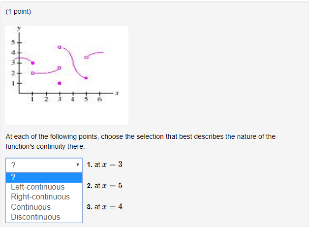 Solved 1 point) 4 2 1 2 3 5 6 Left-continuous | Chegg.com