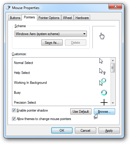 Windows Pointers & Mouse Settings for left-handed people
