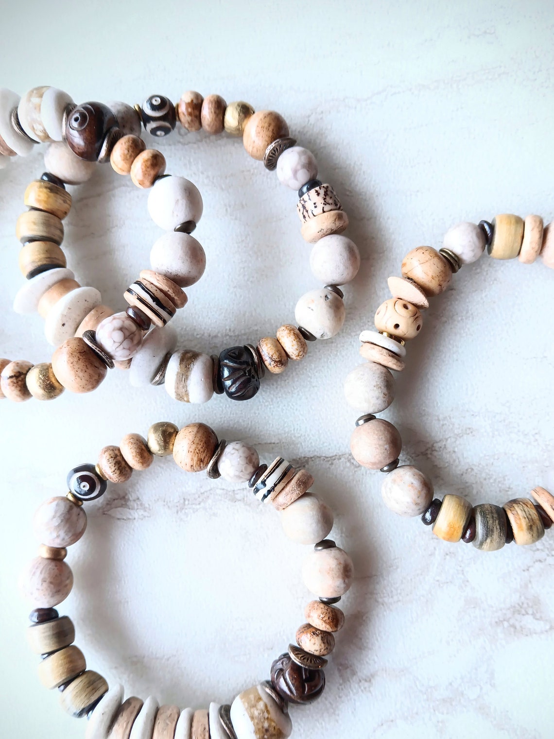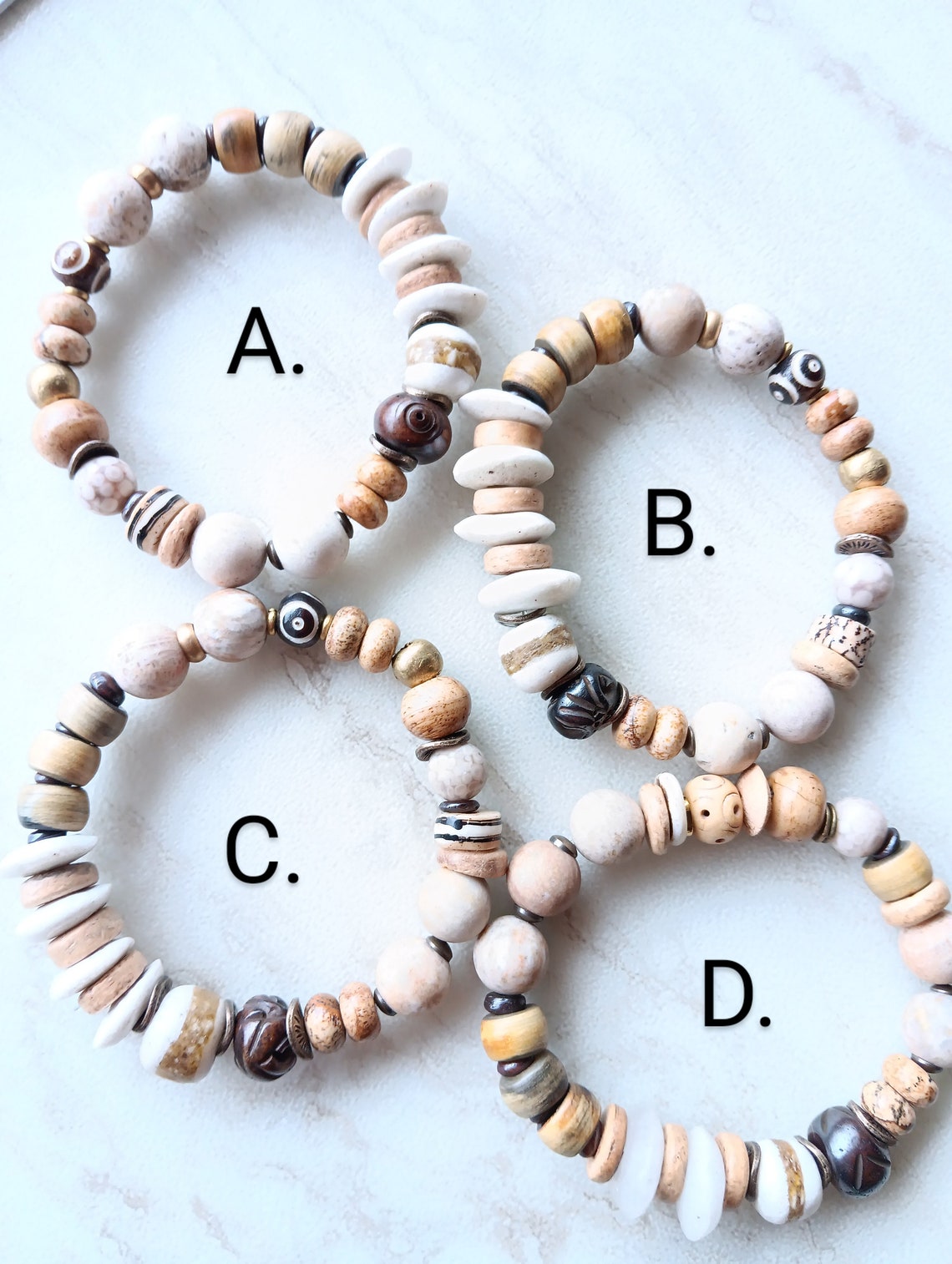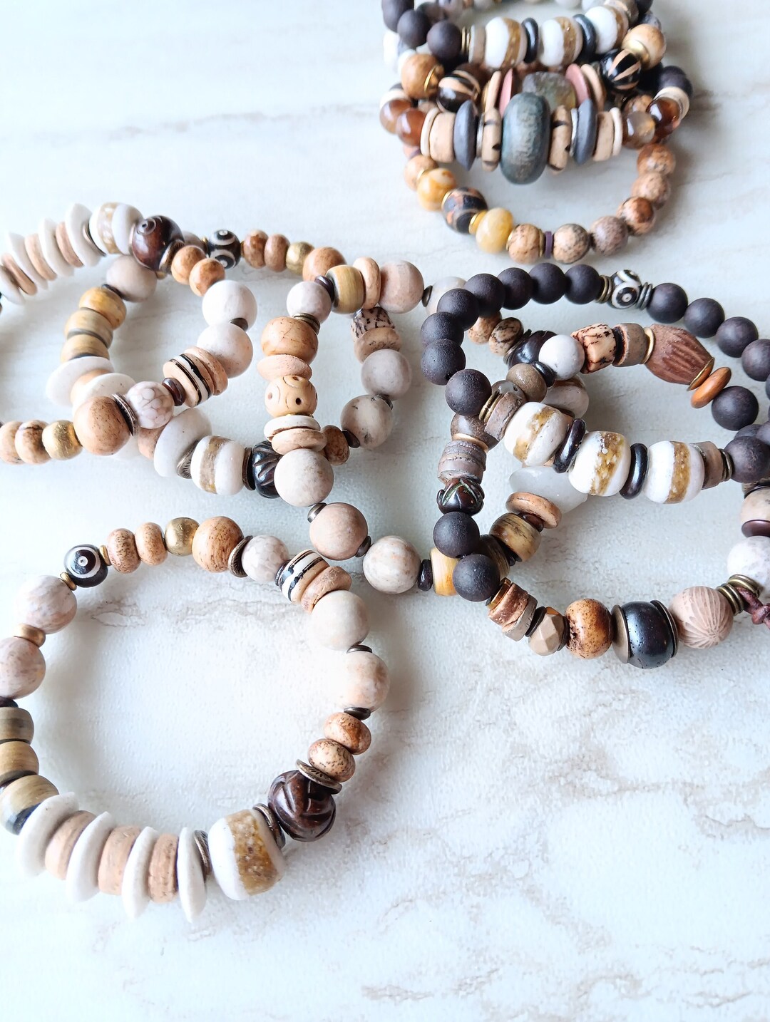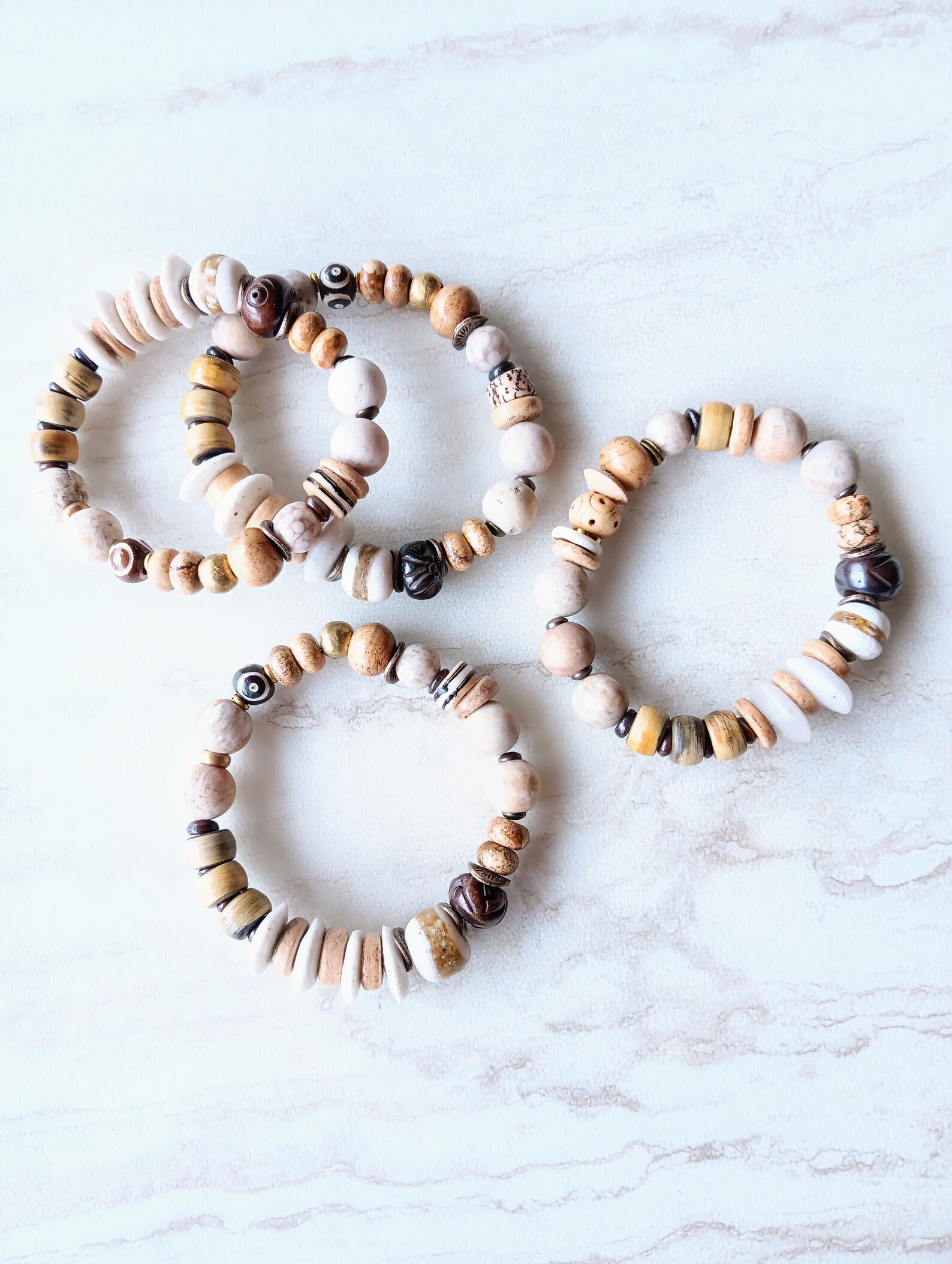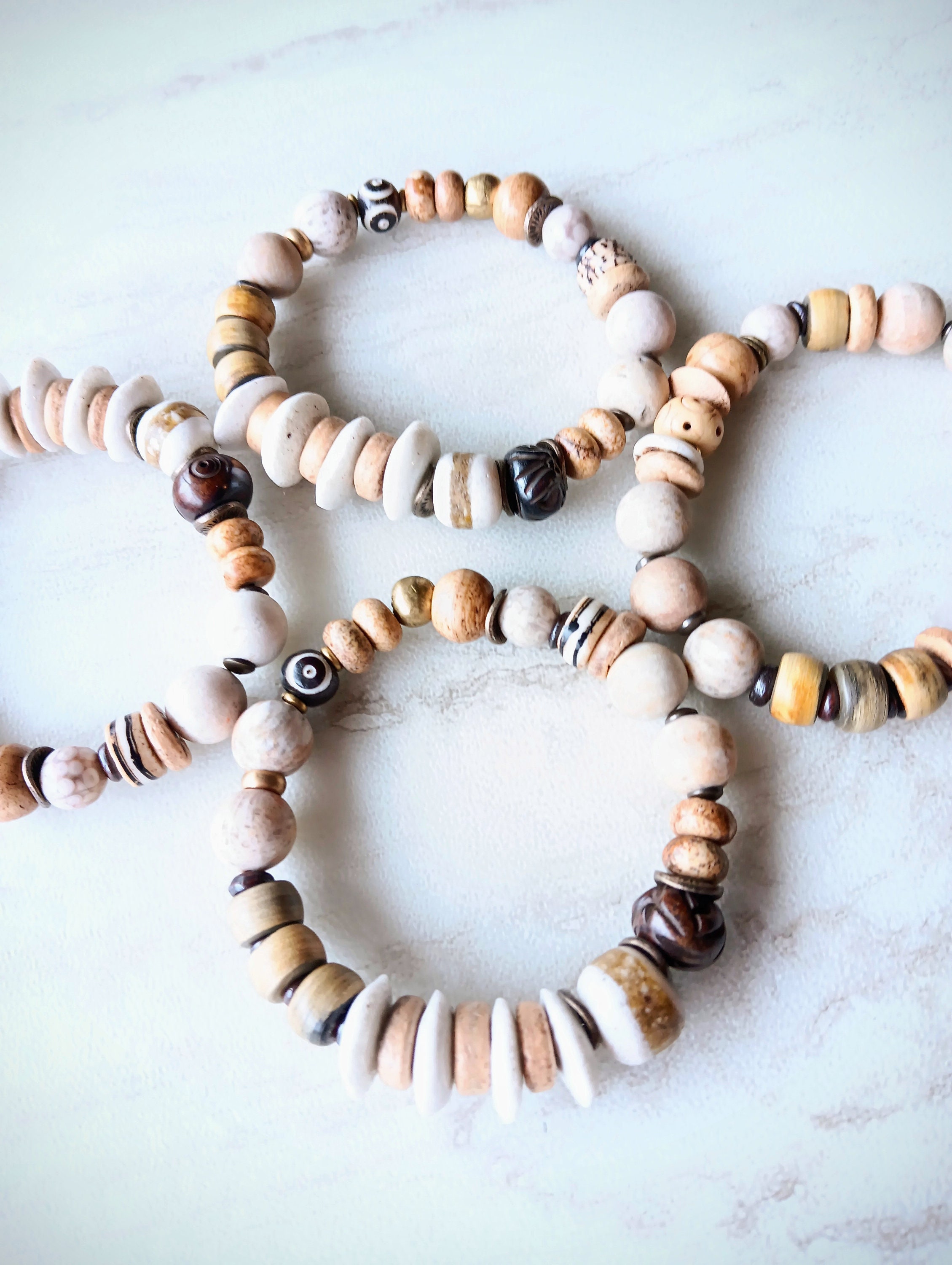 The Left-handed Compliment Stack Bracelets Bone, Fossilized Coral ...