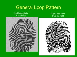 Basic types of fingerprint pattern Left loop Right loop Whorl Arch ...
