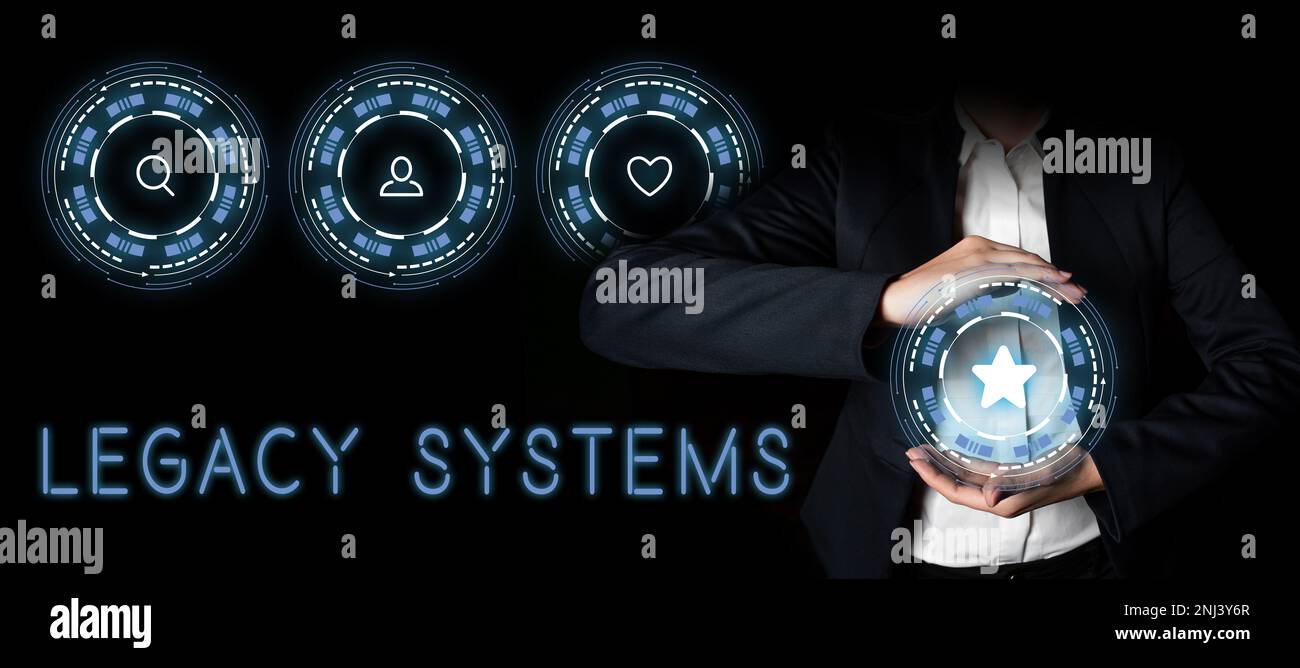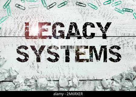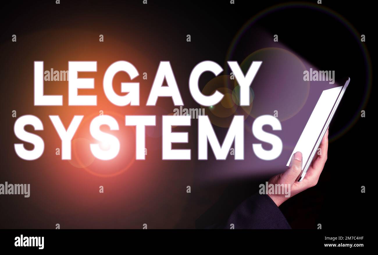 Text caption presenting Legacy Systems, Conceptual photo old method ...