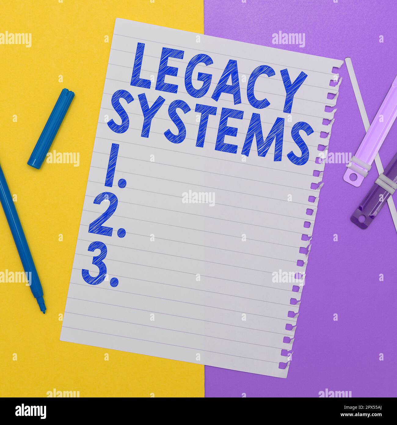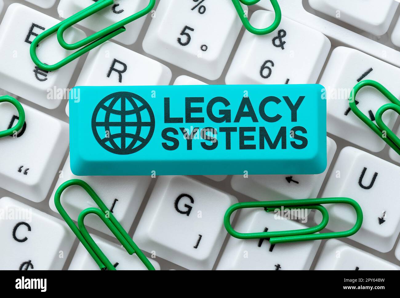 Text sign showing Legacy Systems, Conceptual photo old method ...