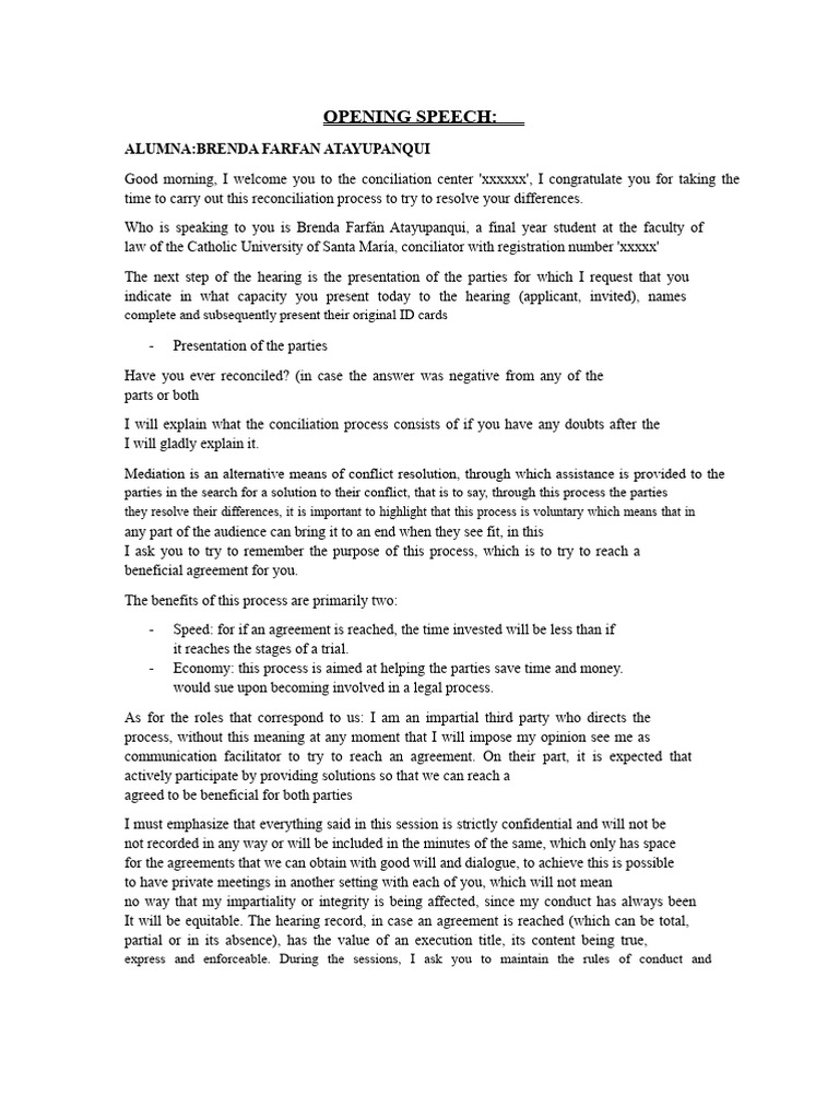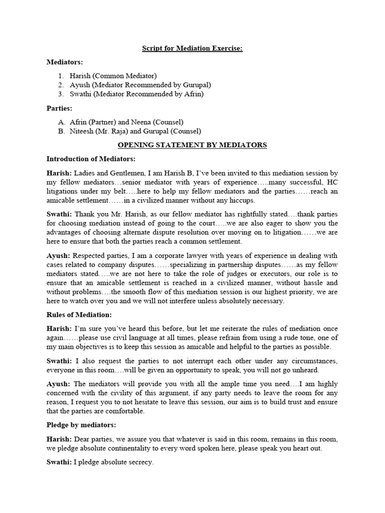 Mediators Opening Statements | PDF | Mediation | Alternative Dispute ...