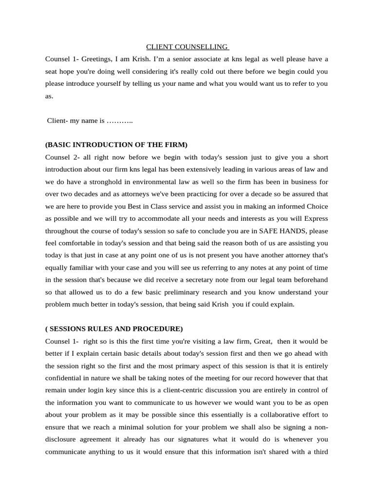 Client Counselling Script | PDF | Mediation | Justice