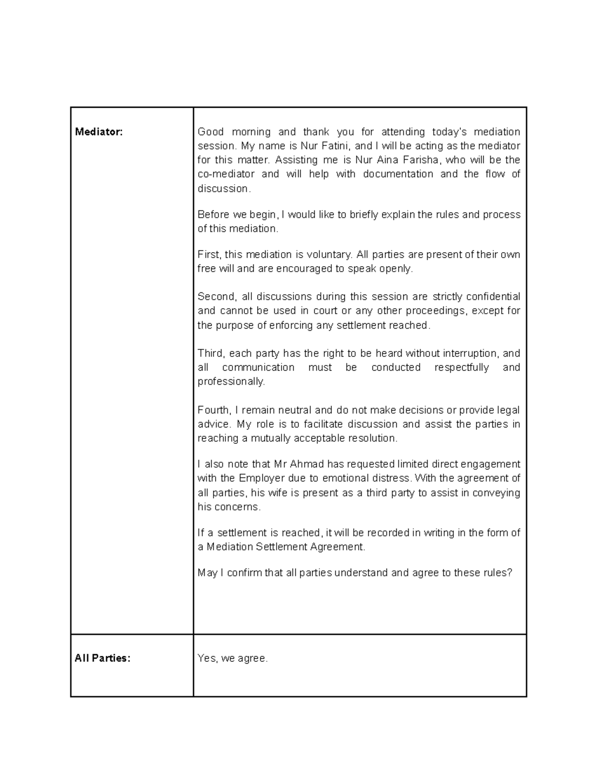 Mediation Session Script: Ahmad vs. Panasonic Malaysia Sdn. Bhd. - Studocu