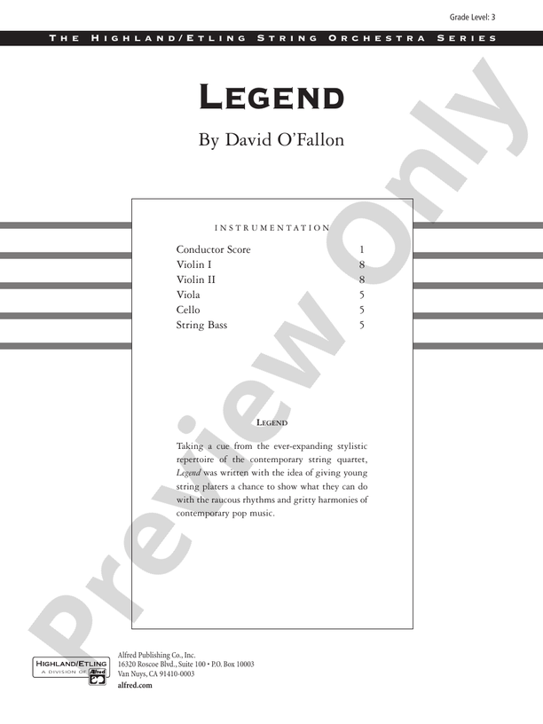 Legend: String Orchestra Conductor Score & Parts: David O'Fallon ...