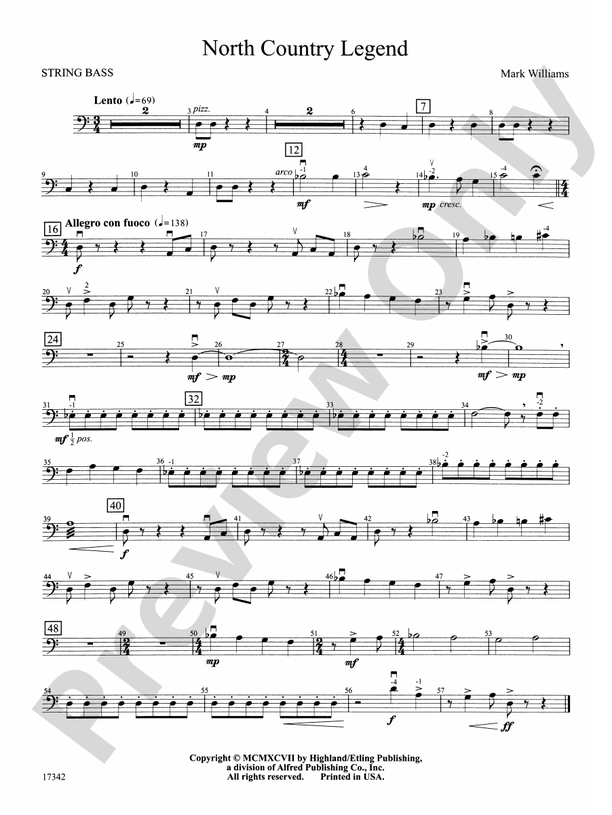 North Country Legend: String Bass: String Bass Part - Digital Sheet ...