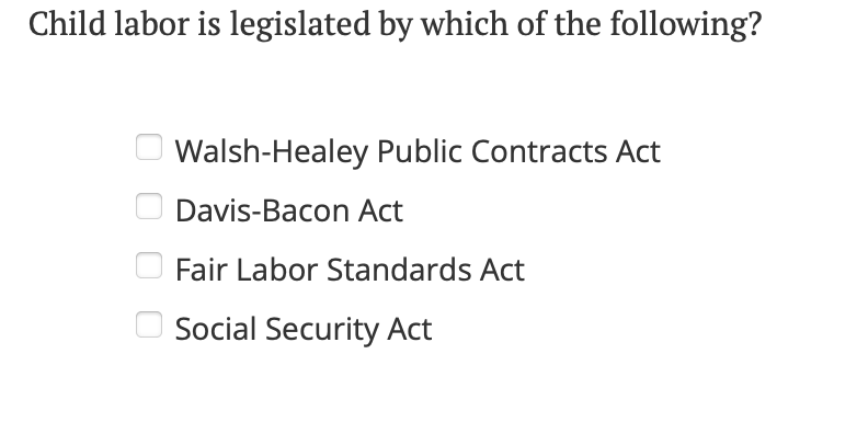 Solved Child labor is legislated by which of the following? | Chegg.com