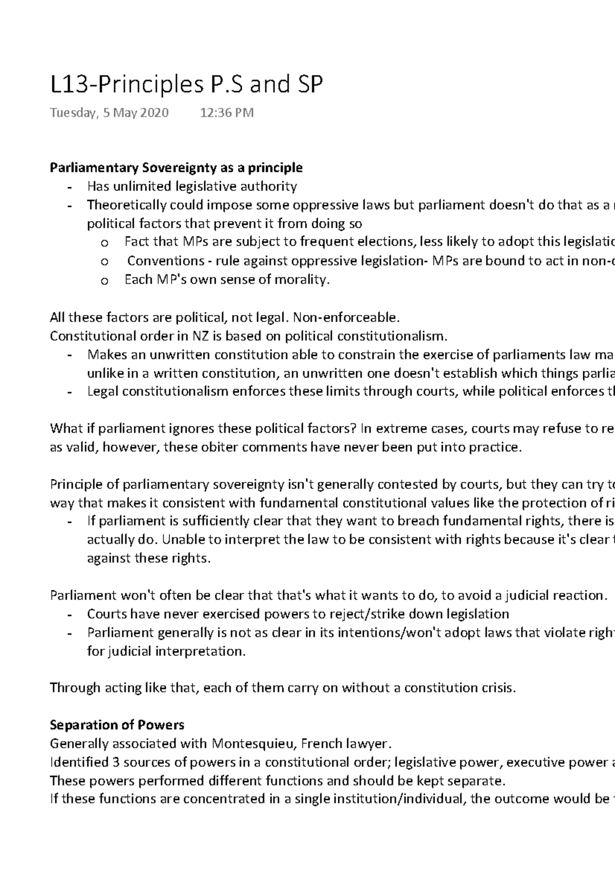 L13-Principles P.S and SP - Parliamentary Sovereignty as a principle ...