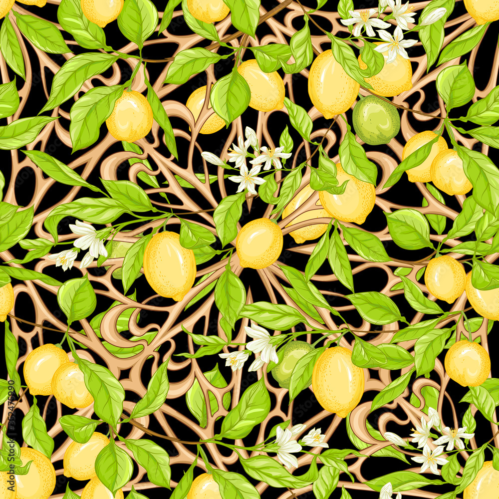 Seamless pattern of lemons. Lemon tree branches lemon fruits and ...
