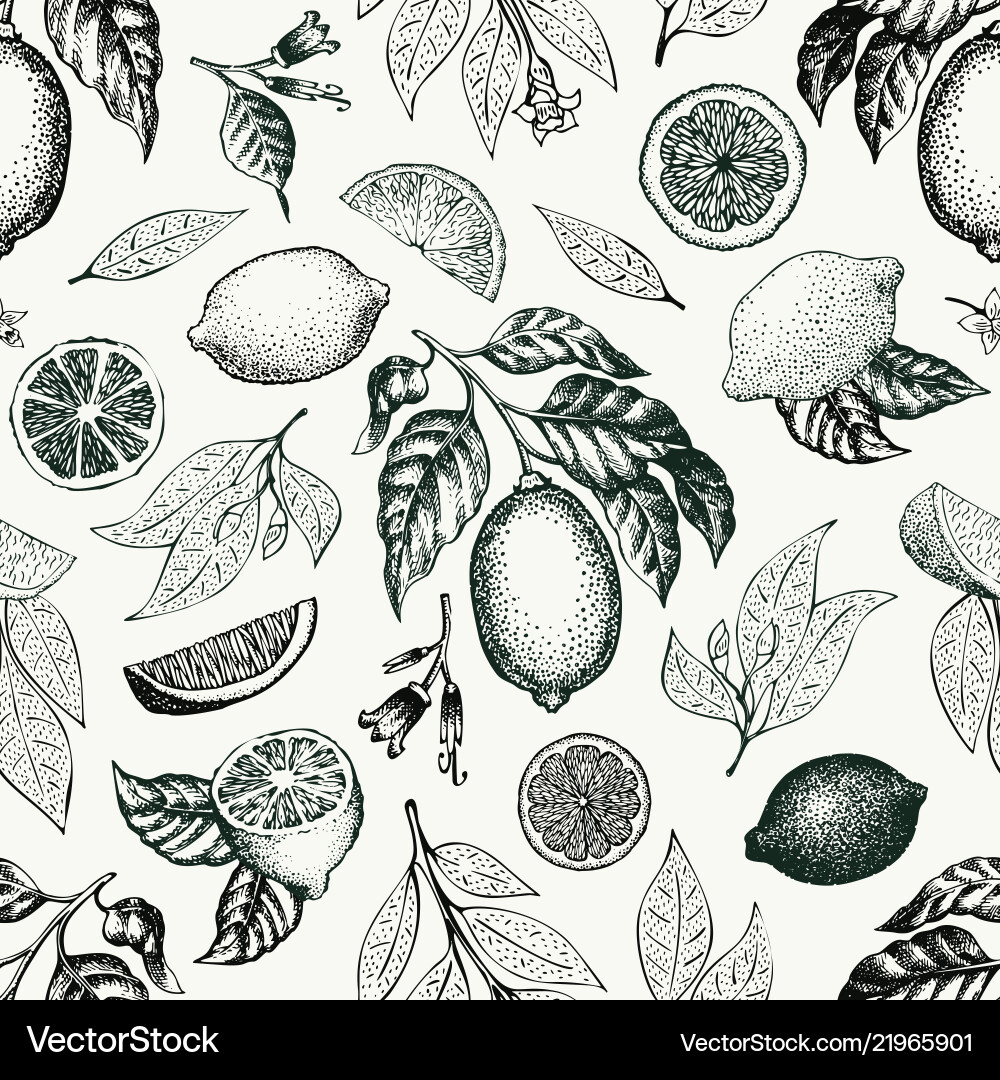 Lemon tree seamless pattern hand drawn fruit Vector Image