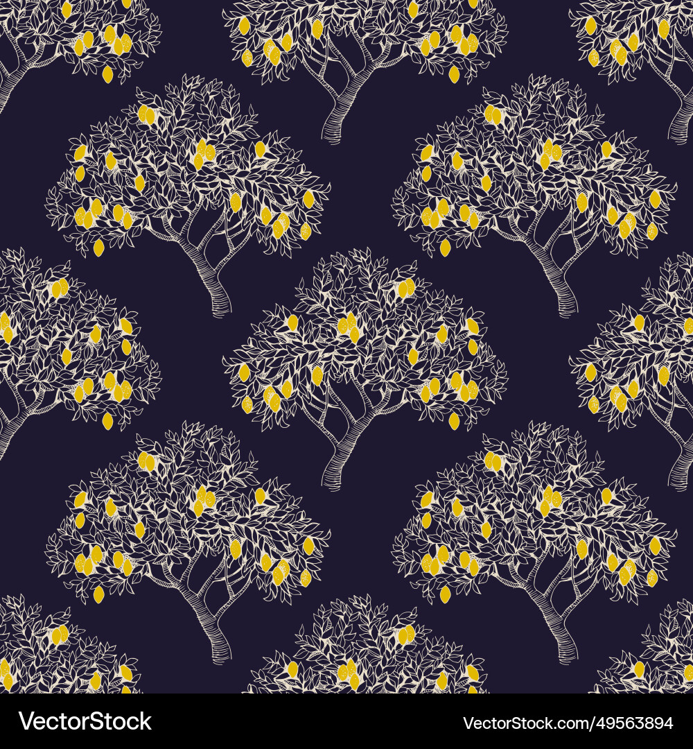 Seamless pattern with lemon trees Royalty Free Vector Image
