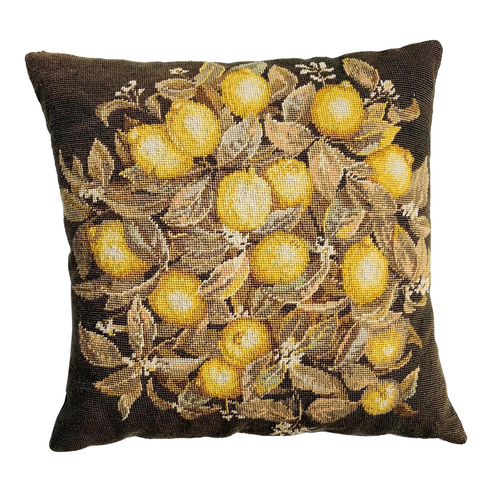 Vintage Needlepoint Lemon Tree Pattern Pillow | Chairish